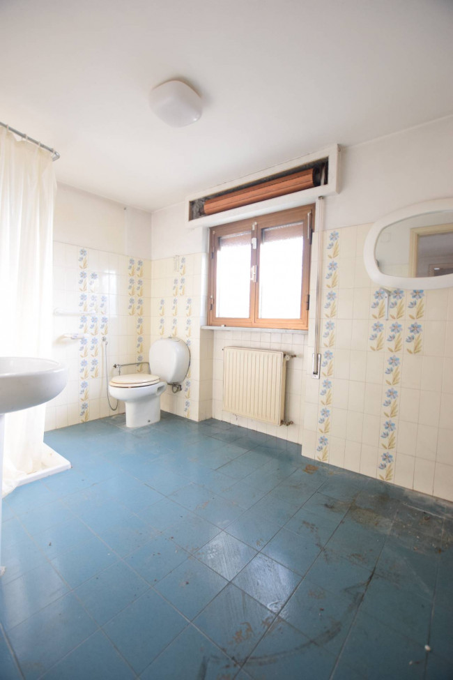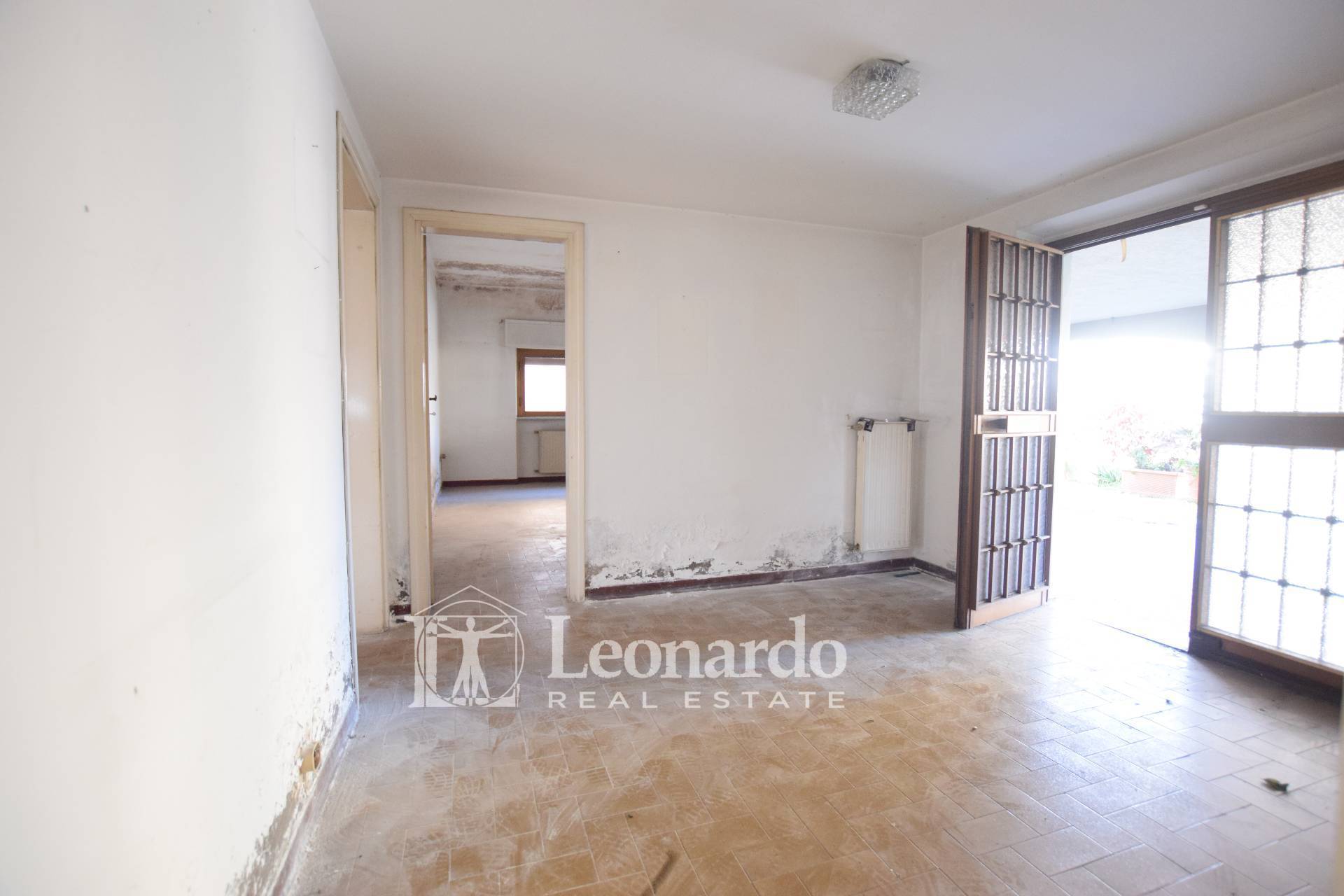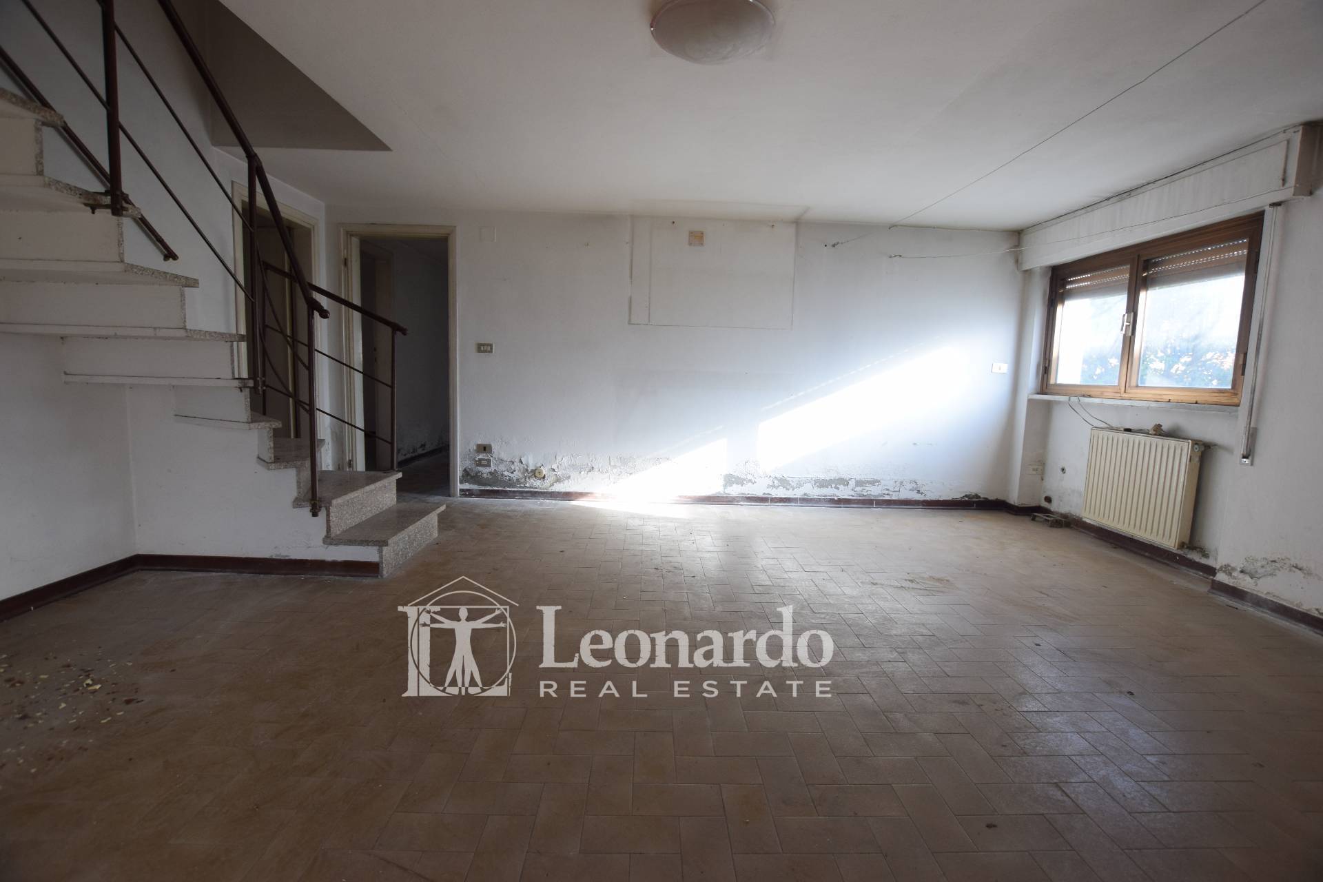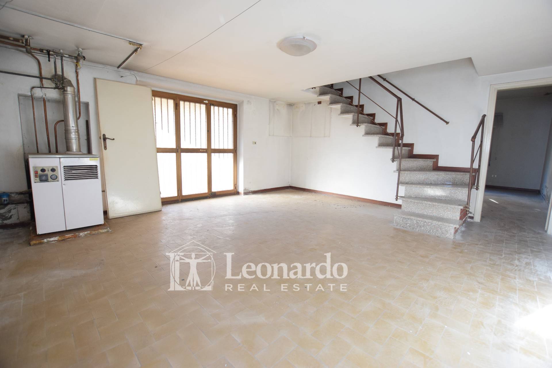 The property for Sale, in need of renovation, offers a versatile layout on two levels: Ground Floor: Independent entrance, large eat-in kitchen overlooking the garden, two large rooms, usable as bedrooms, and a bathroom with window.