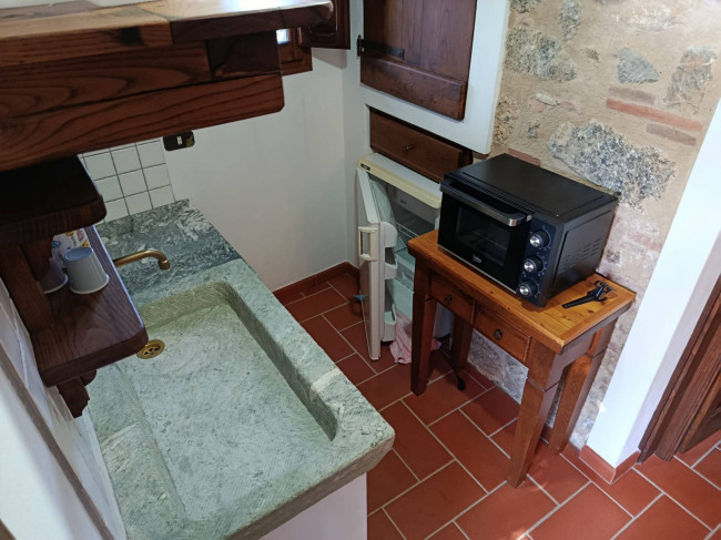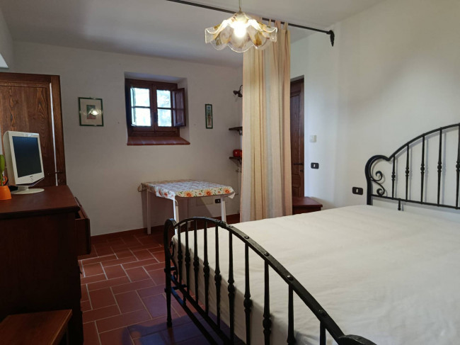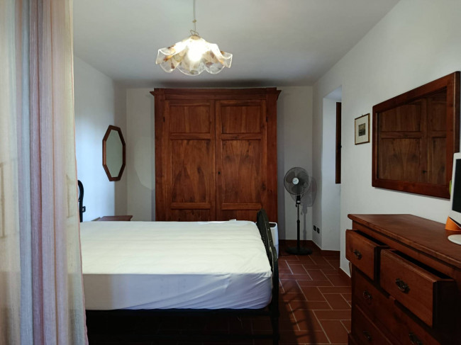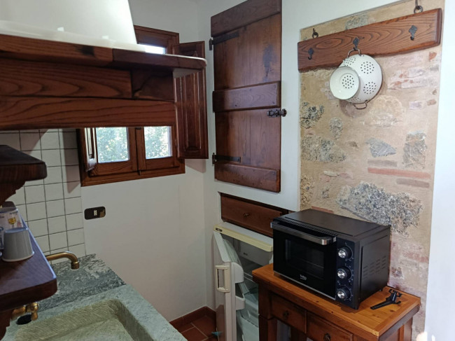 The ground floor offers a pleasant independent two-room apartment with kitchenette, bathroom with shower and double bedroom as well as an above-ground cellar.