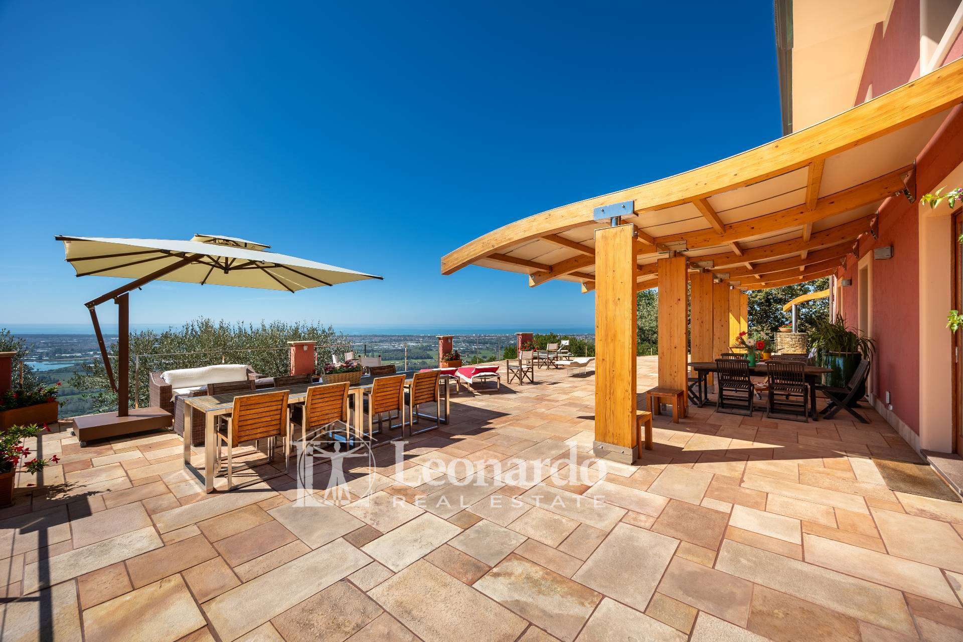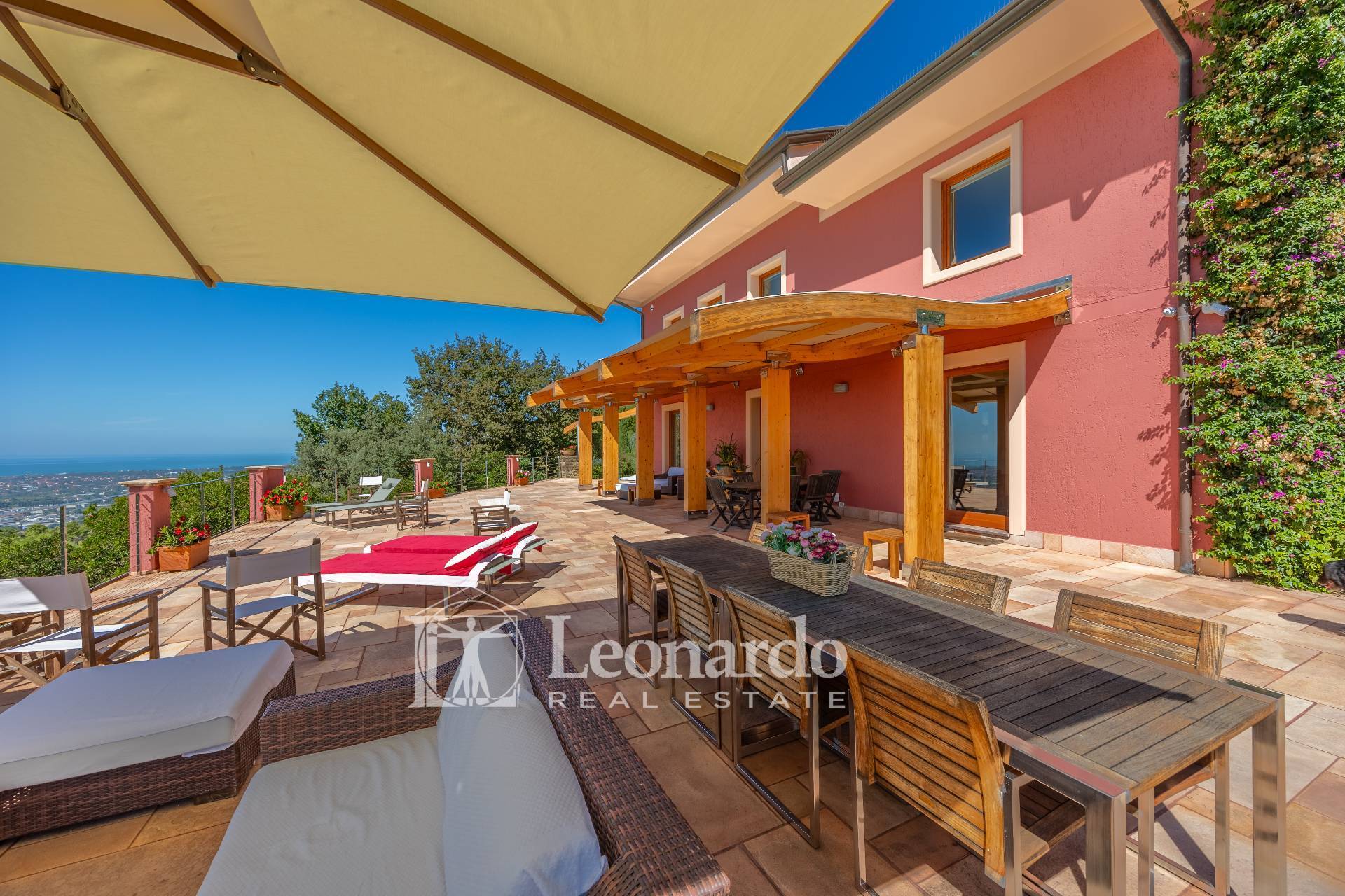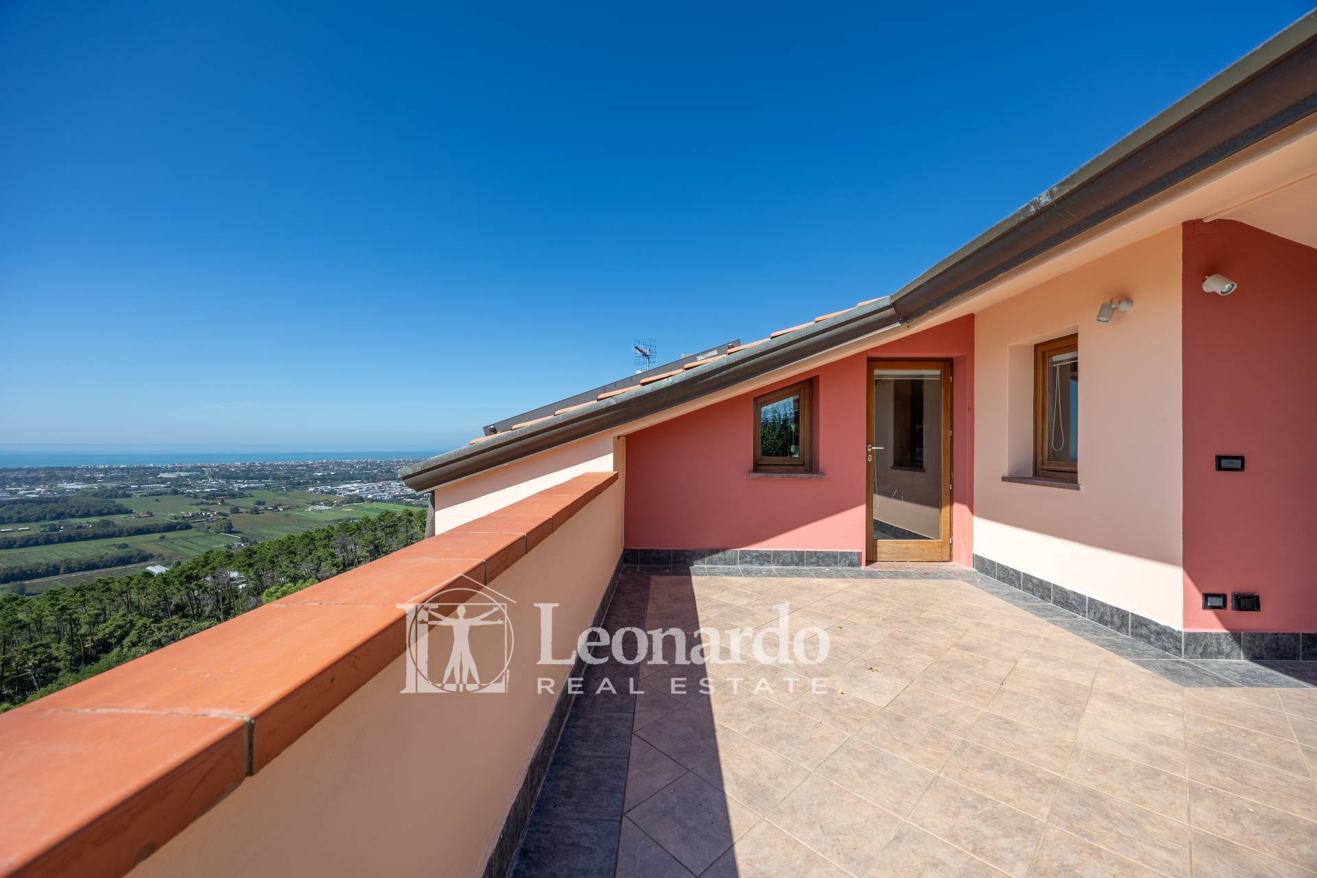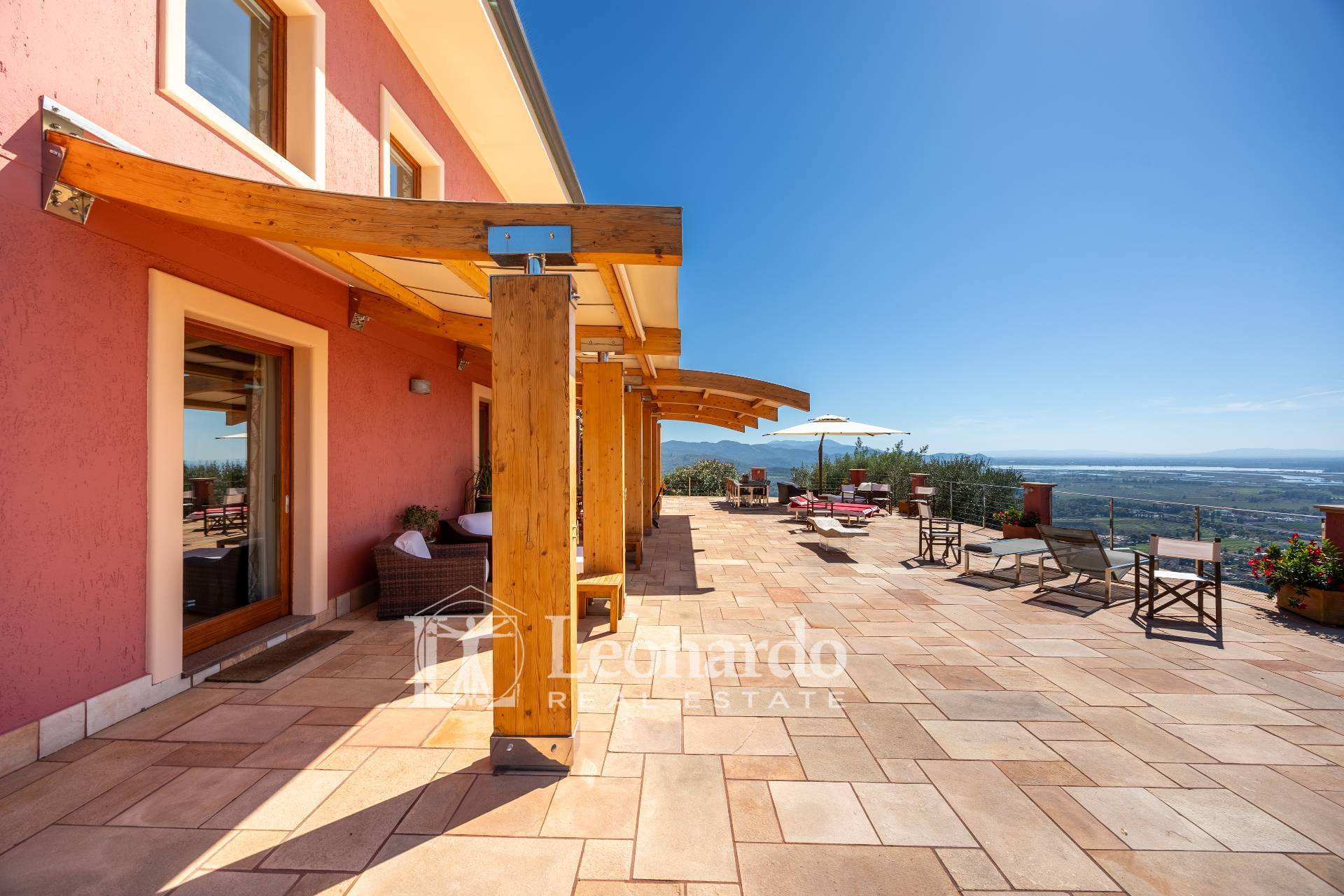 In a dominant and private position, Leonardo Real Estate offers this splendid villa of approximately 300 square meters immersed in a private estate of 2 hectares, with panoramic sea views spanning the entire Versilia coast, from Livorno to La Spezia.
