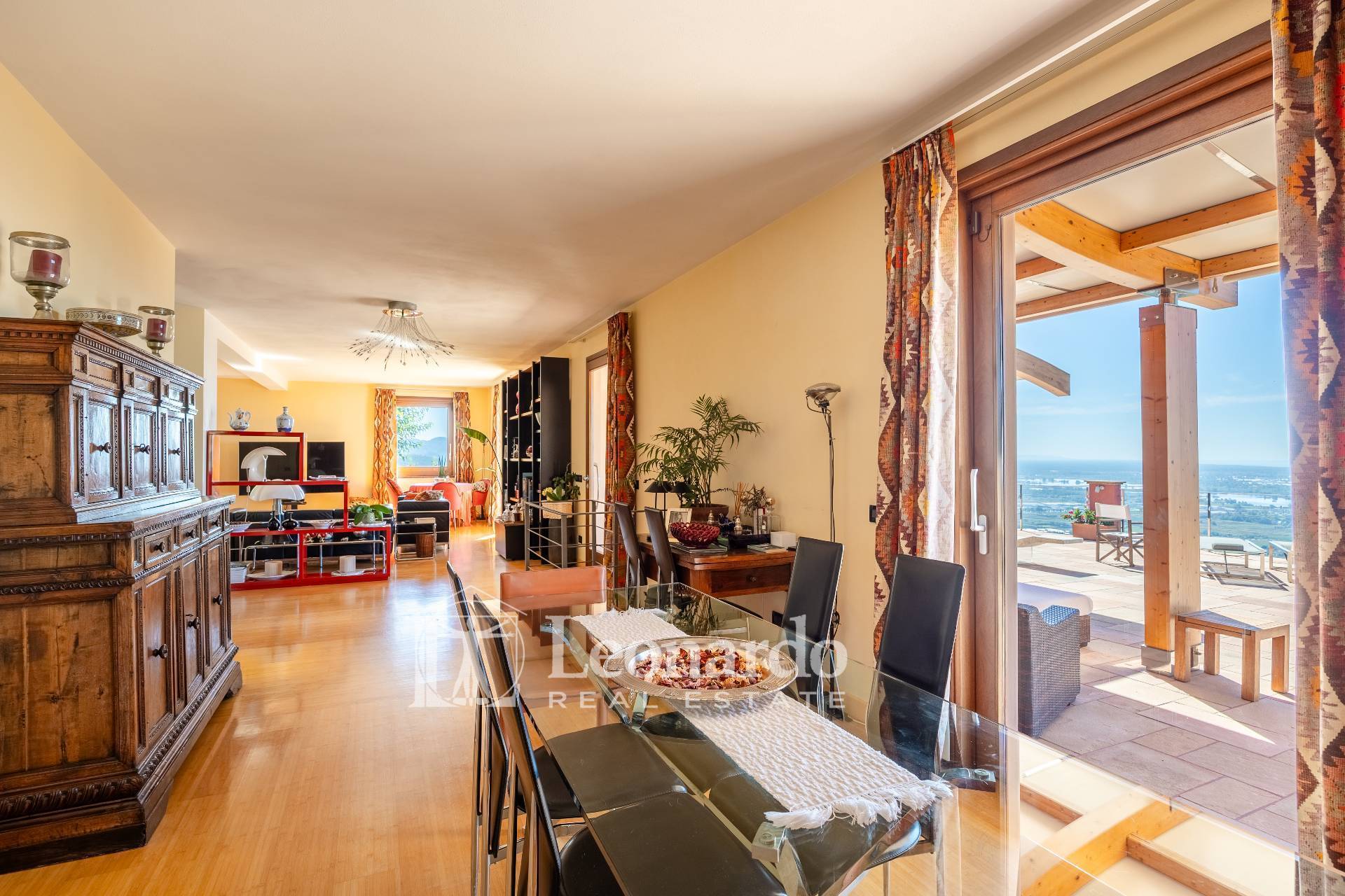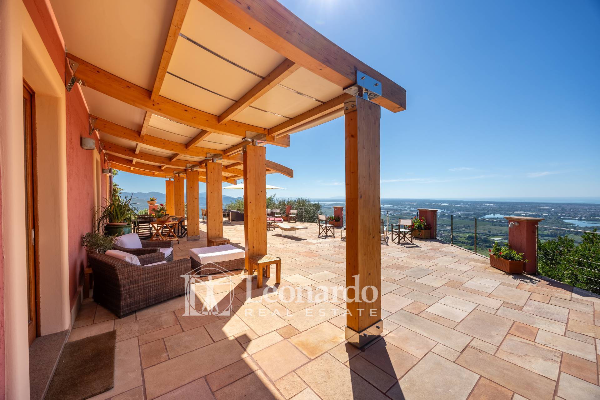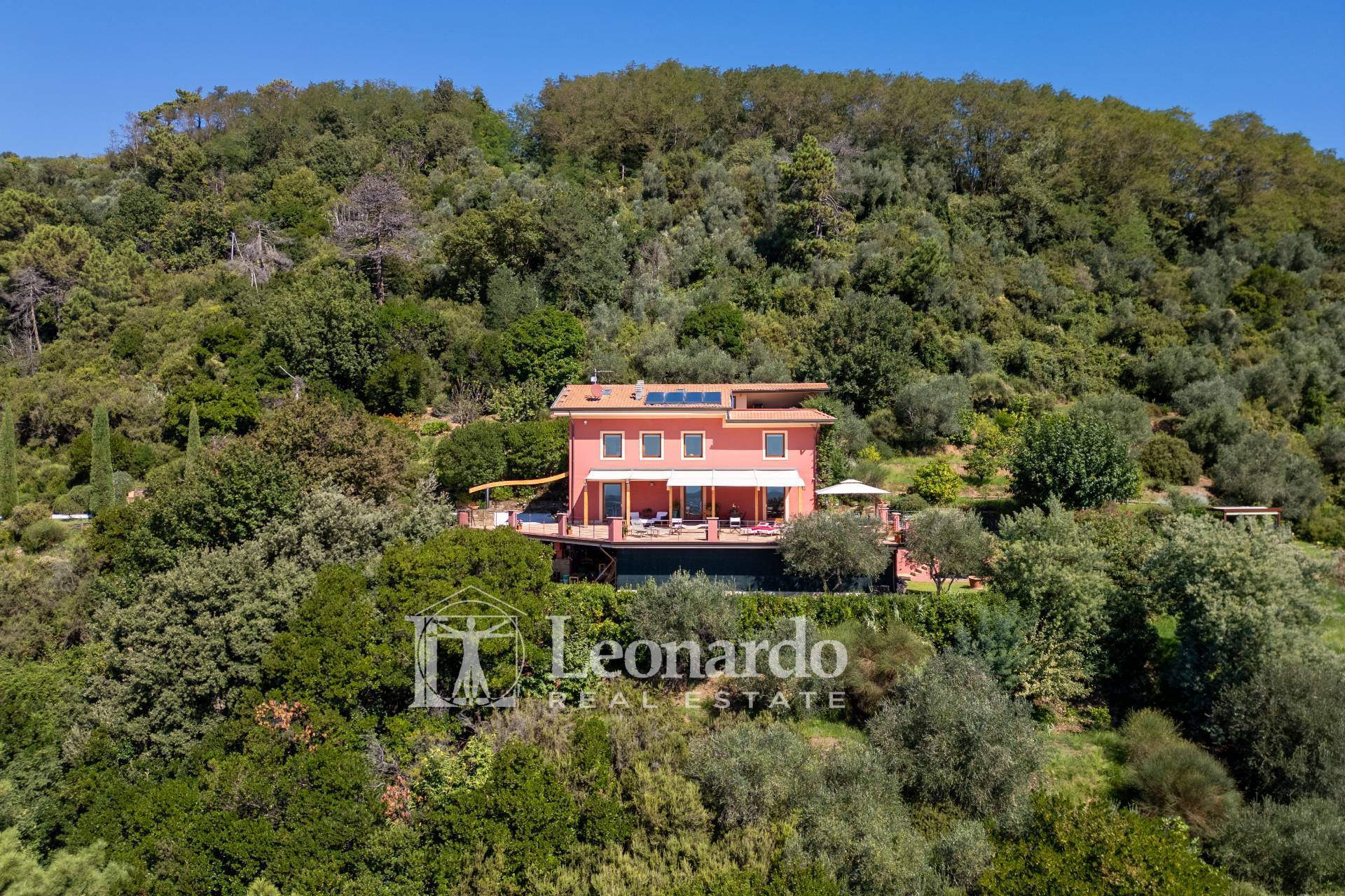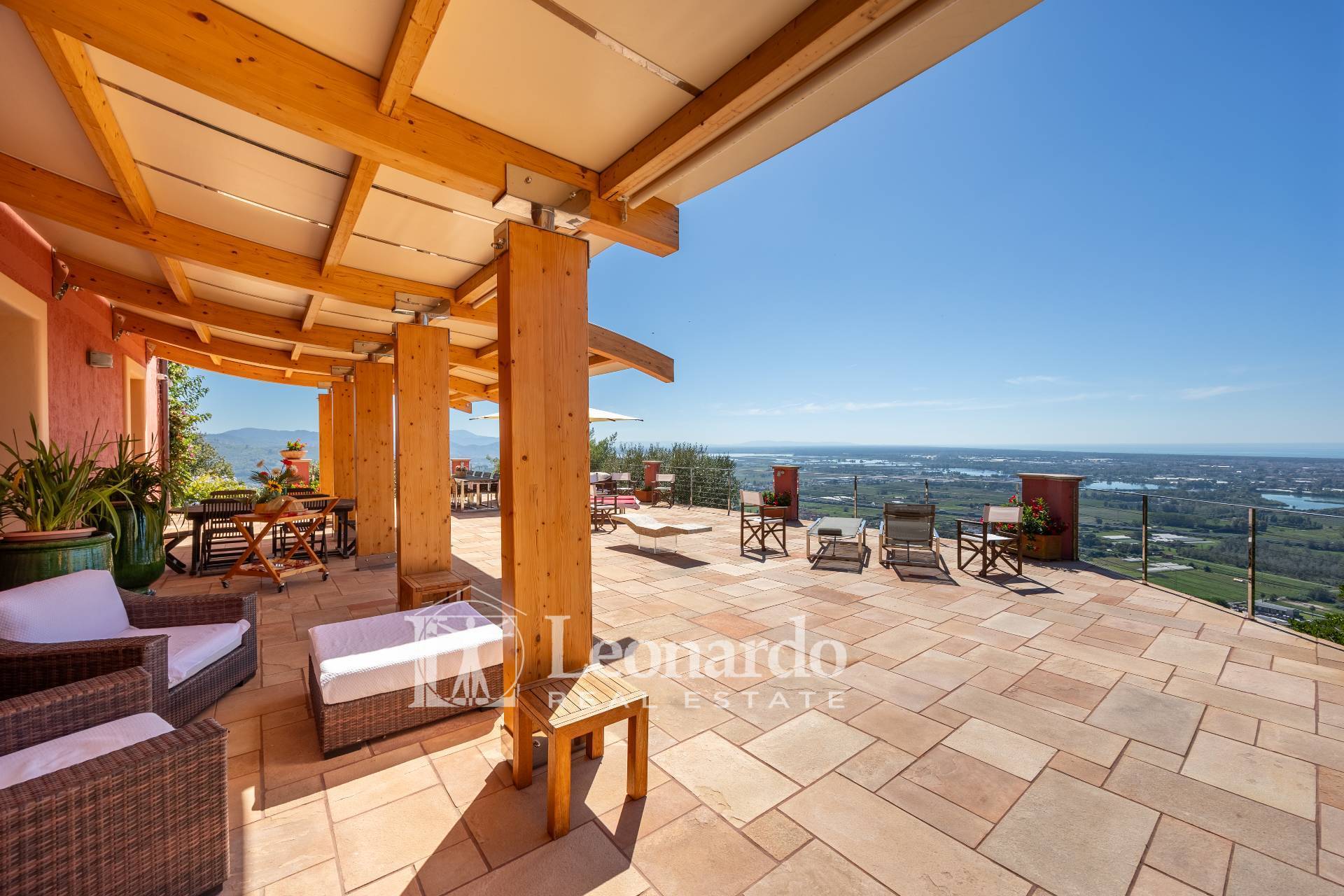 In a dominant and private position, Leonardo Real Estate offers this splendid villa of approximately 300 square meters immersed in a private estate of 2 hectares, with panoramic sea views spanning the entire Versilia coast, from Livorno to La Spezia.