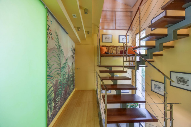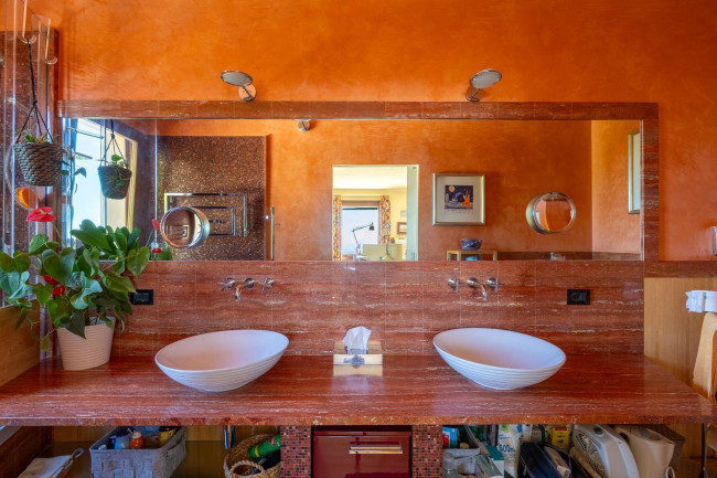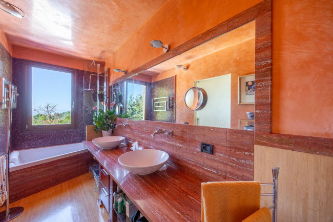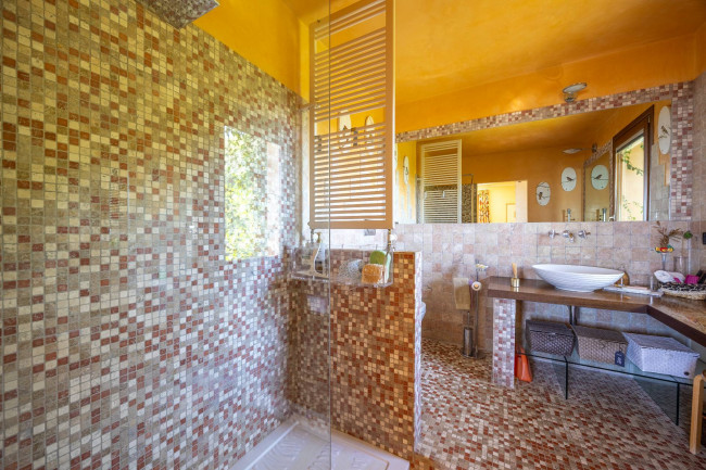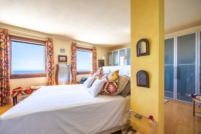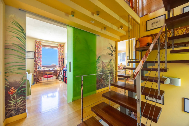 The sleeping area, on the upper floors, includes two large master bedrooms with private bathrooms in mosaic, Venetian stucco and stone, all with sea views.
