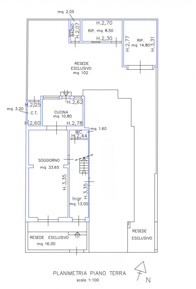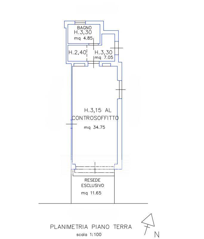 The internal garden, which can also be reached directly from outside the building, is enriched by functional accessory spaces: a storage room with bathroom (approximately 11 m2), a garage (approximately 15 m2), and a utility room.