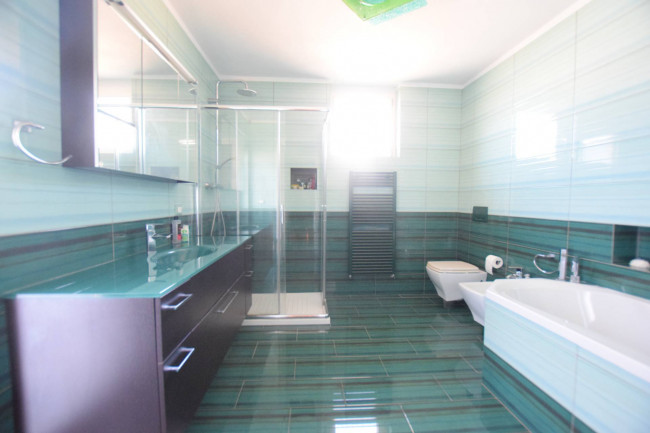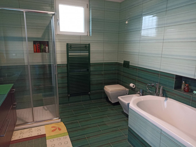 On the ground floor, the entrance leads to a spacious and bright living room with a fireplace, adjacent to a dining room and eat-in kitchen with direct access to the garden, ideal for al fresco lunches and dinners. A convenient guest bathroom completes the level.