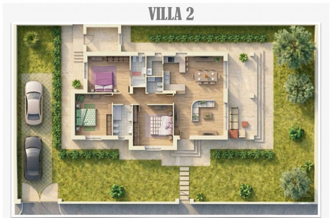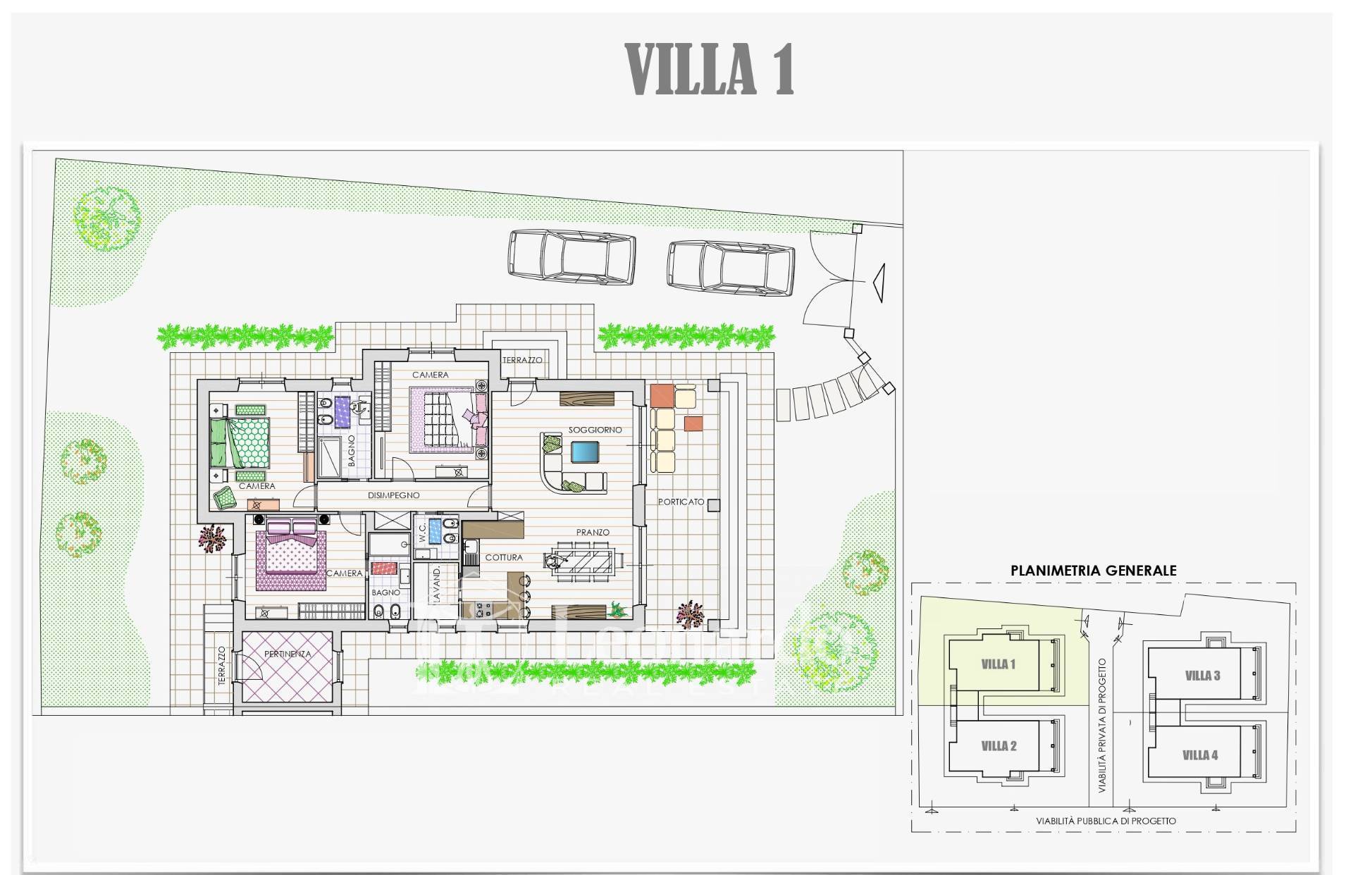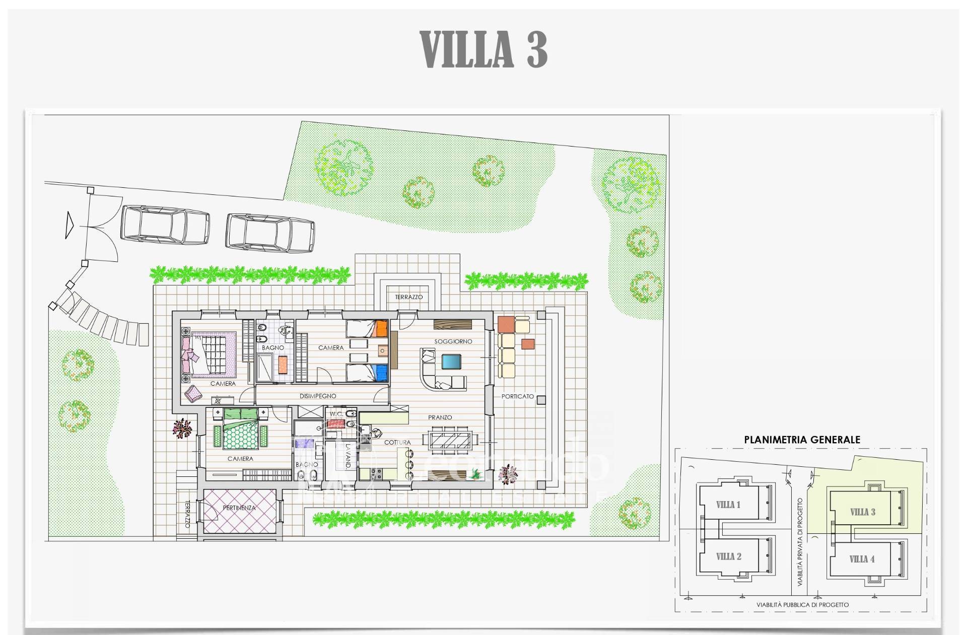 The outdoor spaces are designed to fully enjoy every season: porches of over 20 square meters overlook large private gardens, which surround the homes on four sides, with surfaces ranging from 299 square meters to 362 square meters.
