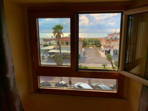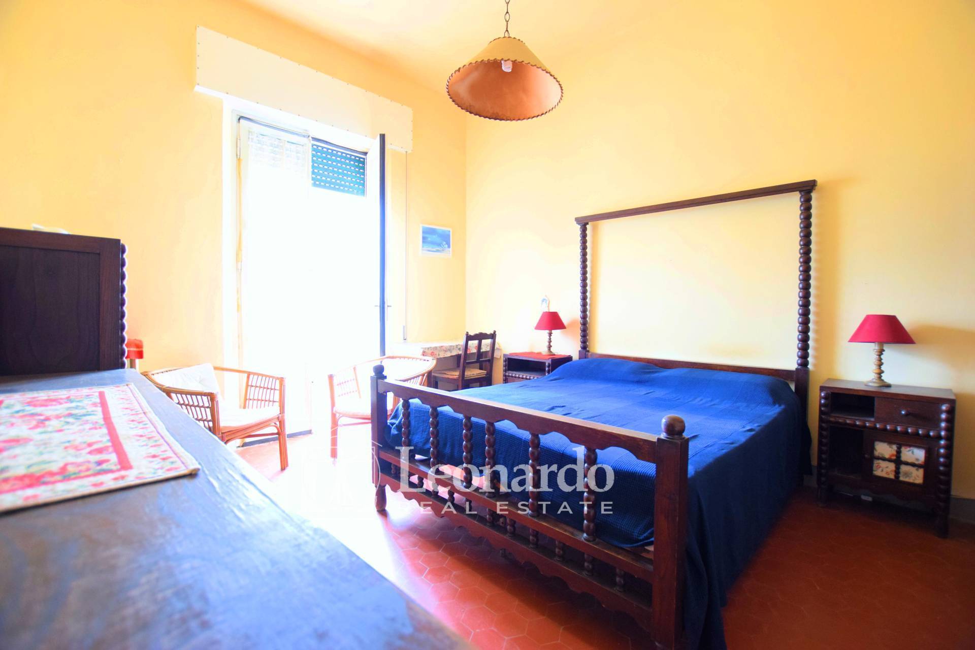Il piano primo, organizzato come un appartamento indipendente, si compone di cucina e soggiorno con accesso alla magnifica terrazza, tre camere da letto di cui due matrimoniali con balcone affacciate sul mare, e bagno.