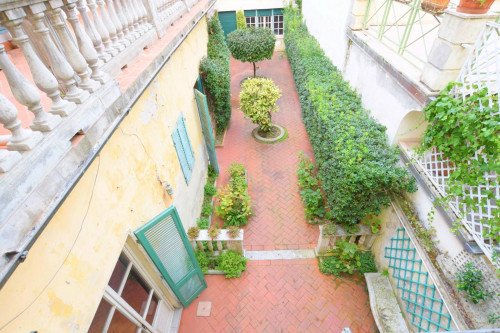 Il giardino o corte come viene definito in zona, ha una superficie di circa 100mq, luminoso ed accogliente. Dalla corte poi si accede mediante una scala alla meravigliosa terrazza, di altri 75mq contornata di colonnine originali e che trova accesso anche dal primo piano.