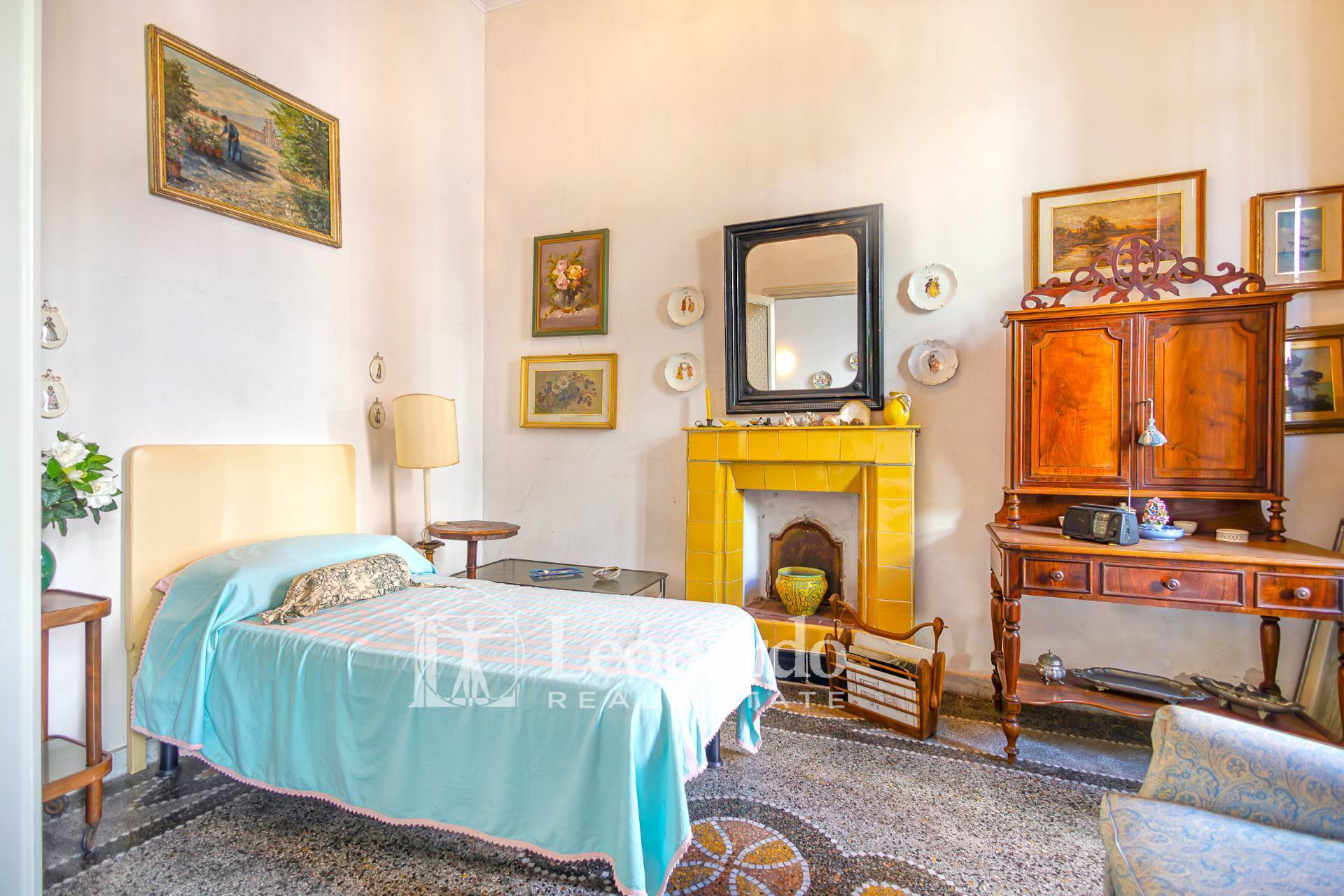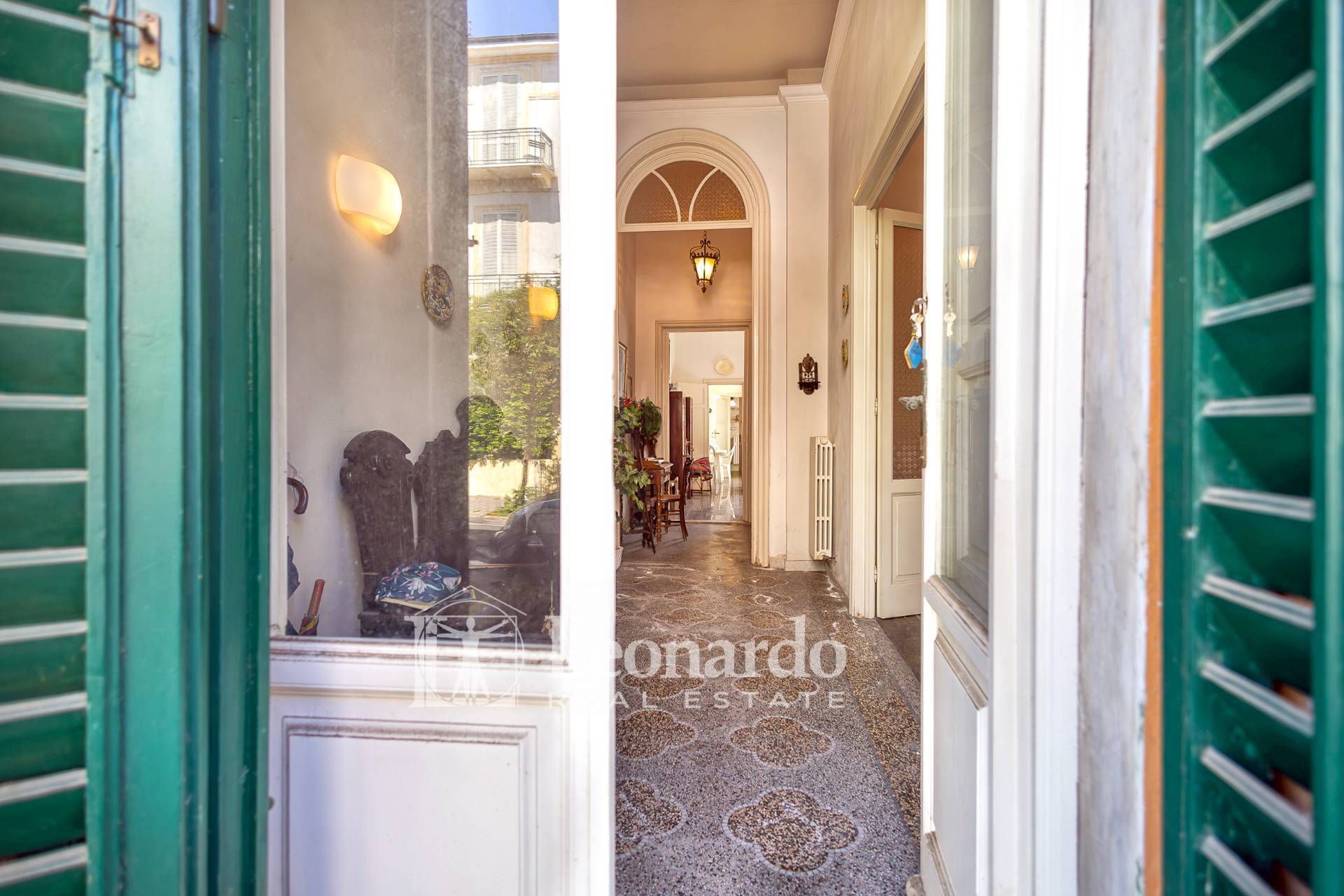 Pavimenti originali in cementina, soffitti d’epoca e dettagli architettonici autentici valorizzano l’anima storica di questa dimora.