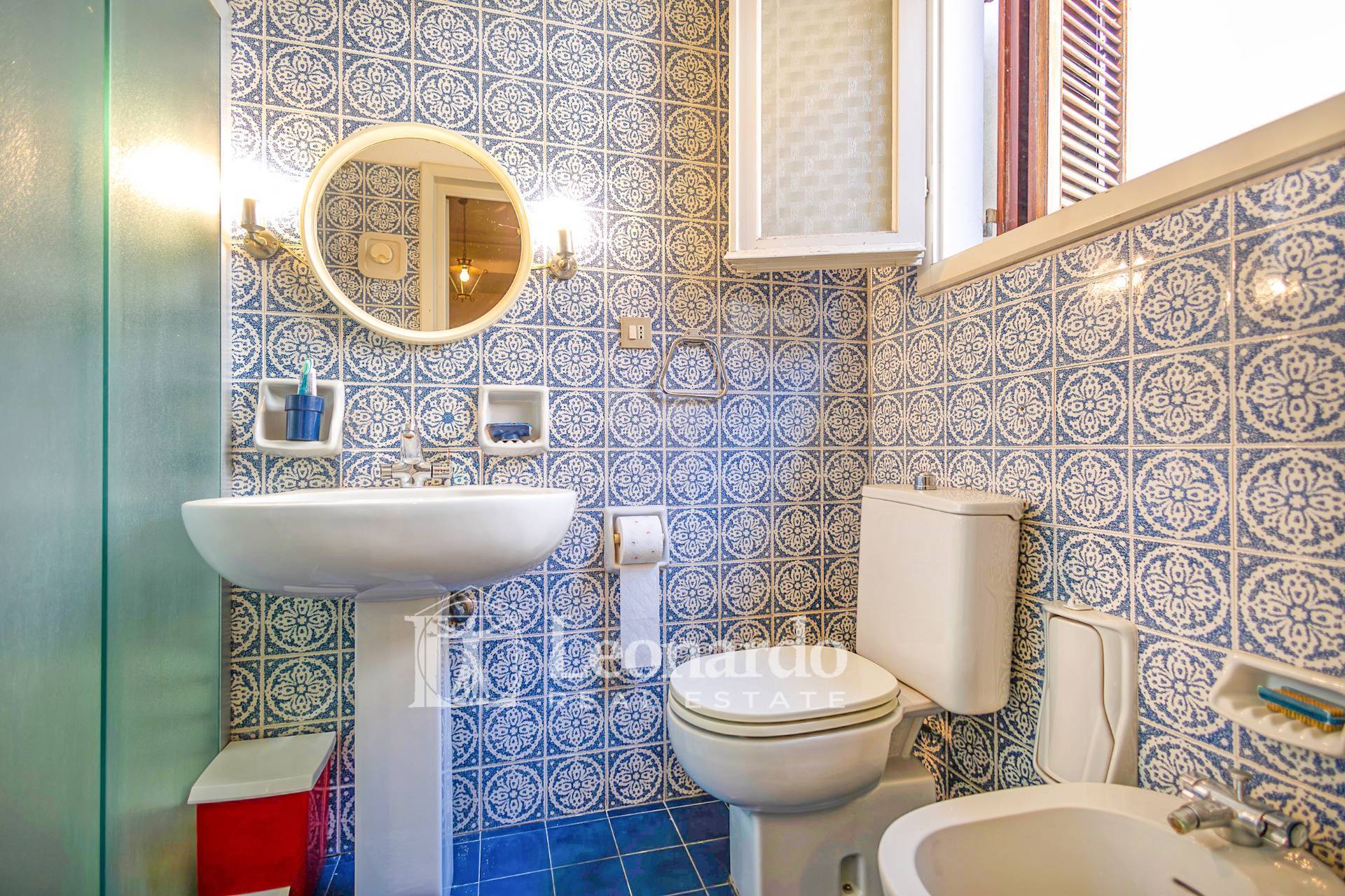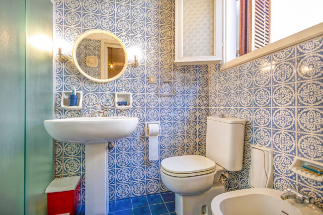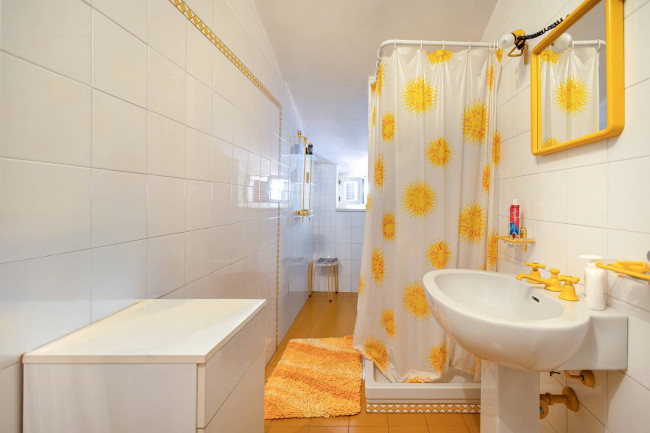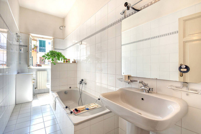 Il bagno principale, finestrato e luminoso, completa il piano con eleganza e praticità.
