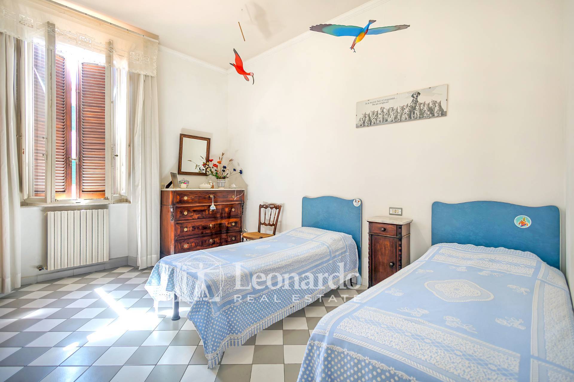 La zona notte ospita due ampie camere matrimoniali, una delle quali con balcone, e una camerina anch’essa con balcone, ideale come studio o stanza per i bambini.