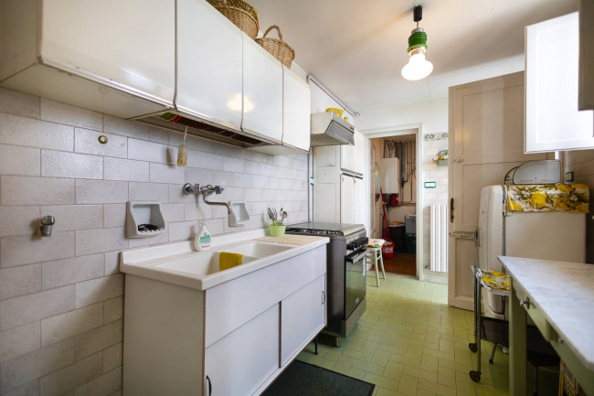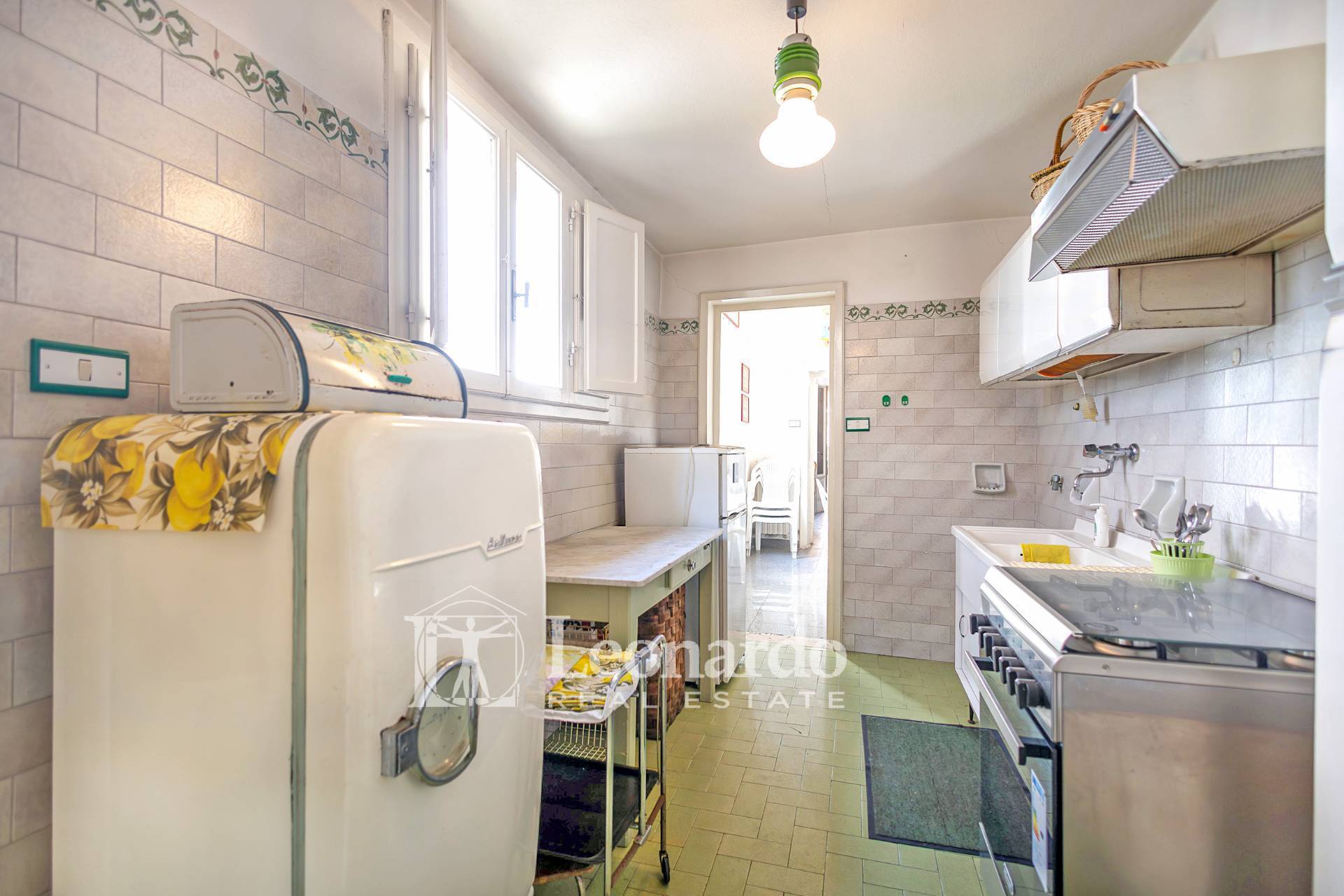 La cucina, ampia e funzionale, gode anch’essa dell’affaccio sulla corte.