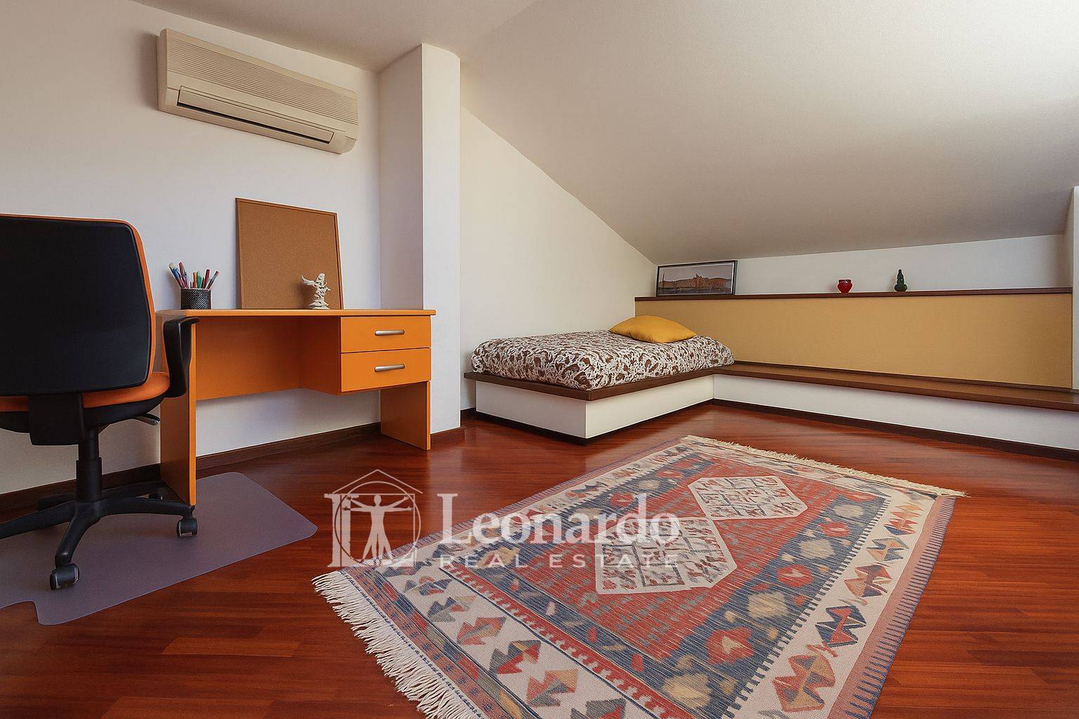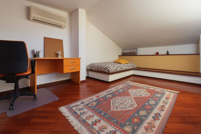All’ultimo livello, mansardato ma ben vivibile, si trova un quarto vano oggi utilizzato come camera da letto, completo di bagno privato: uno spazio perfetto per gli ospiti o come zona indipendente.