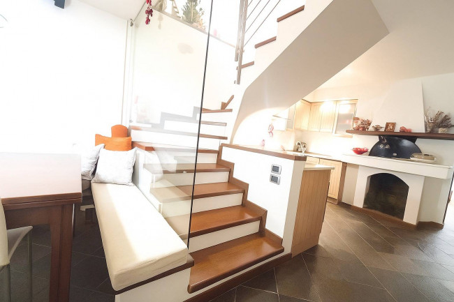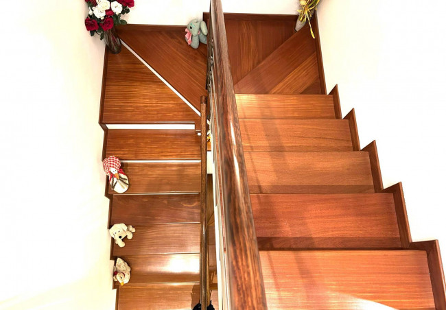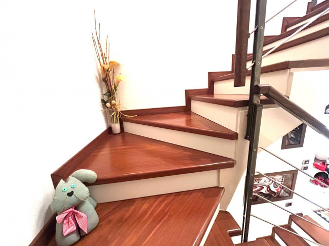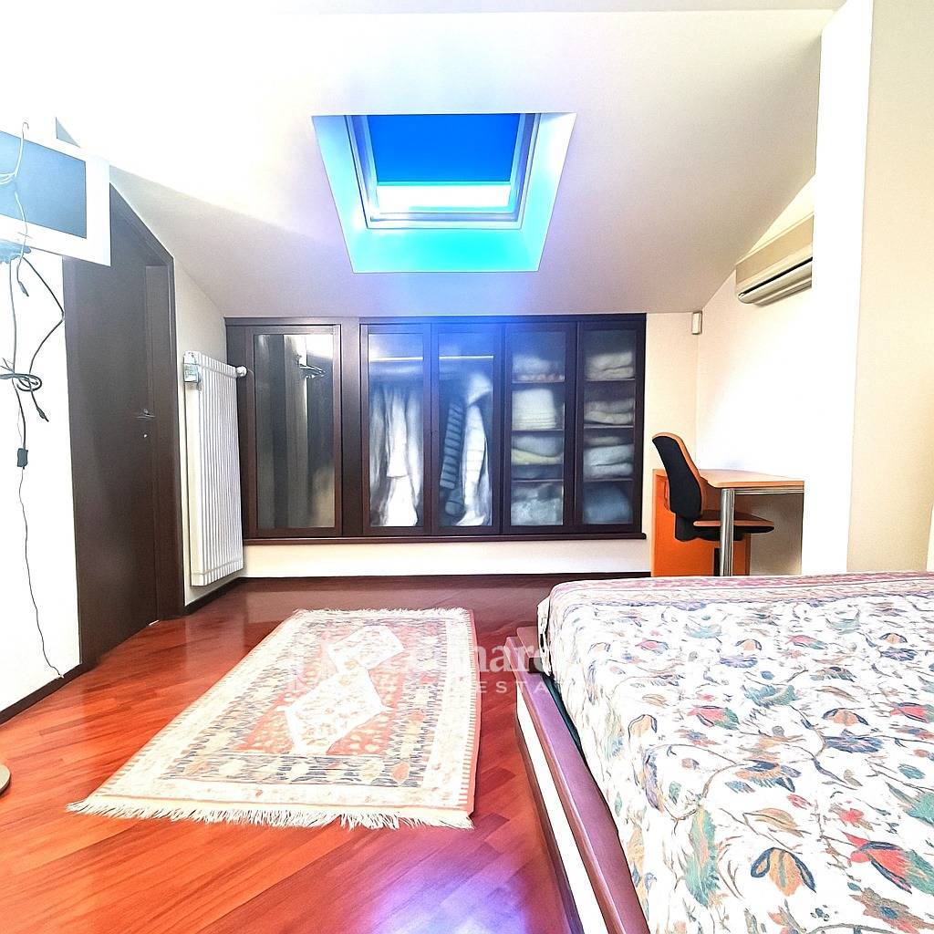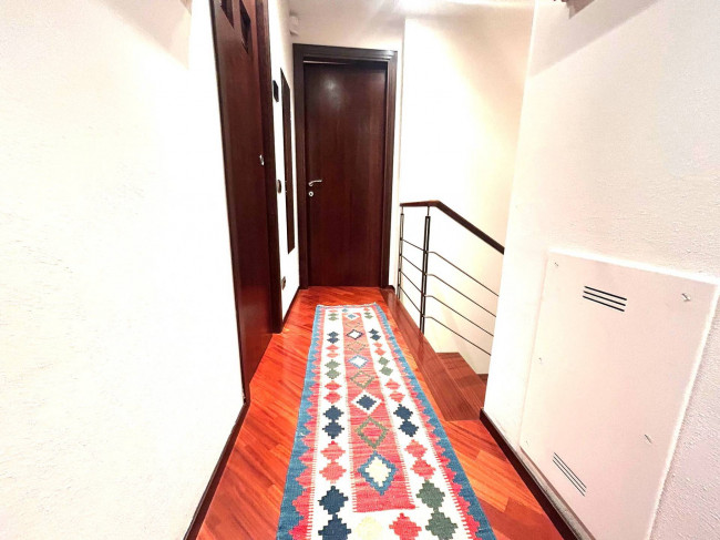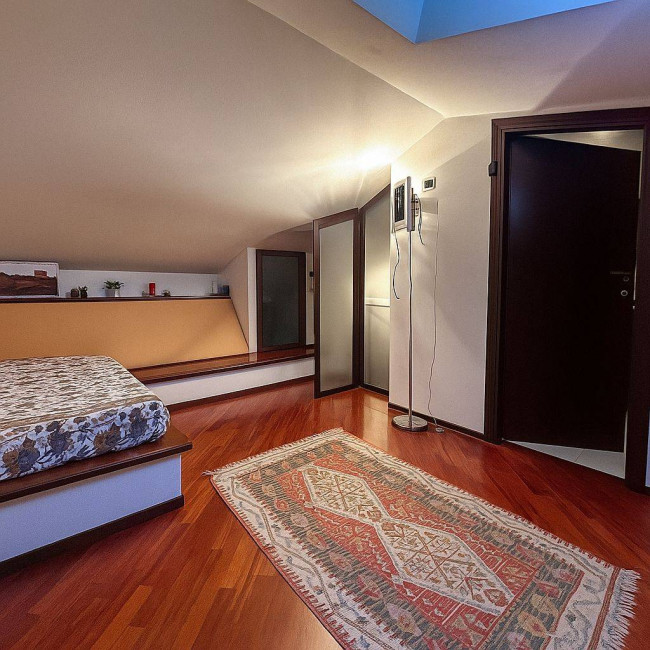 Salendo al piano superiore si accede alla zona notte, rifinita con parquet pregiato che dona calore e charme agli ambienti.