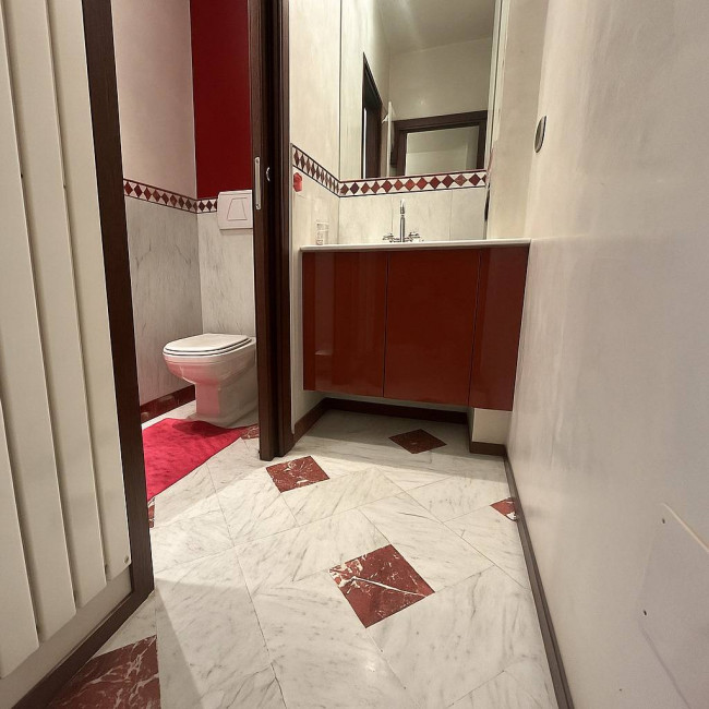 L’ingresso accoglie con un ampio soggiorno, impreziosito da pavimenti in marmo bianco e da spazi aperti perfettamente distribuiti. Proseguendo arriviamo alla zona pranzo e alla cucina pensate per vivere la quotidianità con eleganza, entrambi offrono la possibilità di accede alla corte. Completa la zona giorno anche un bagno di servizio.