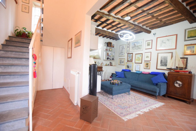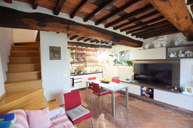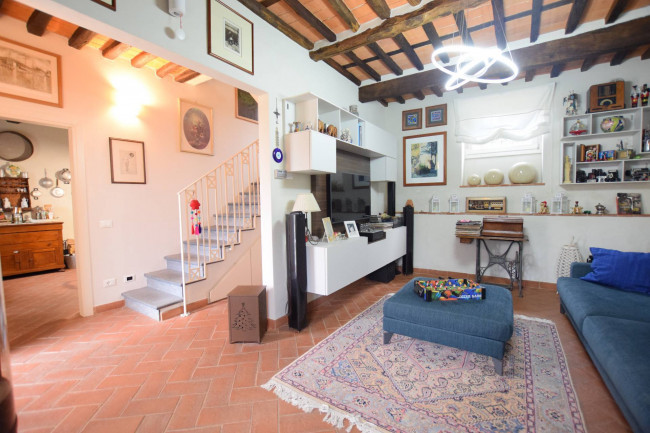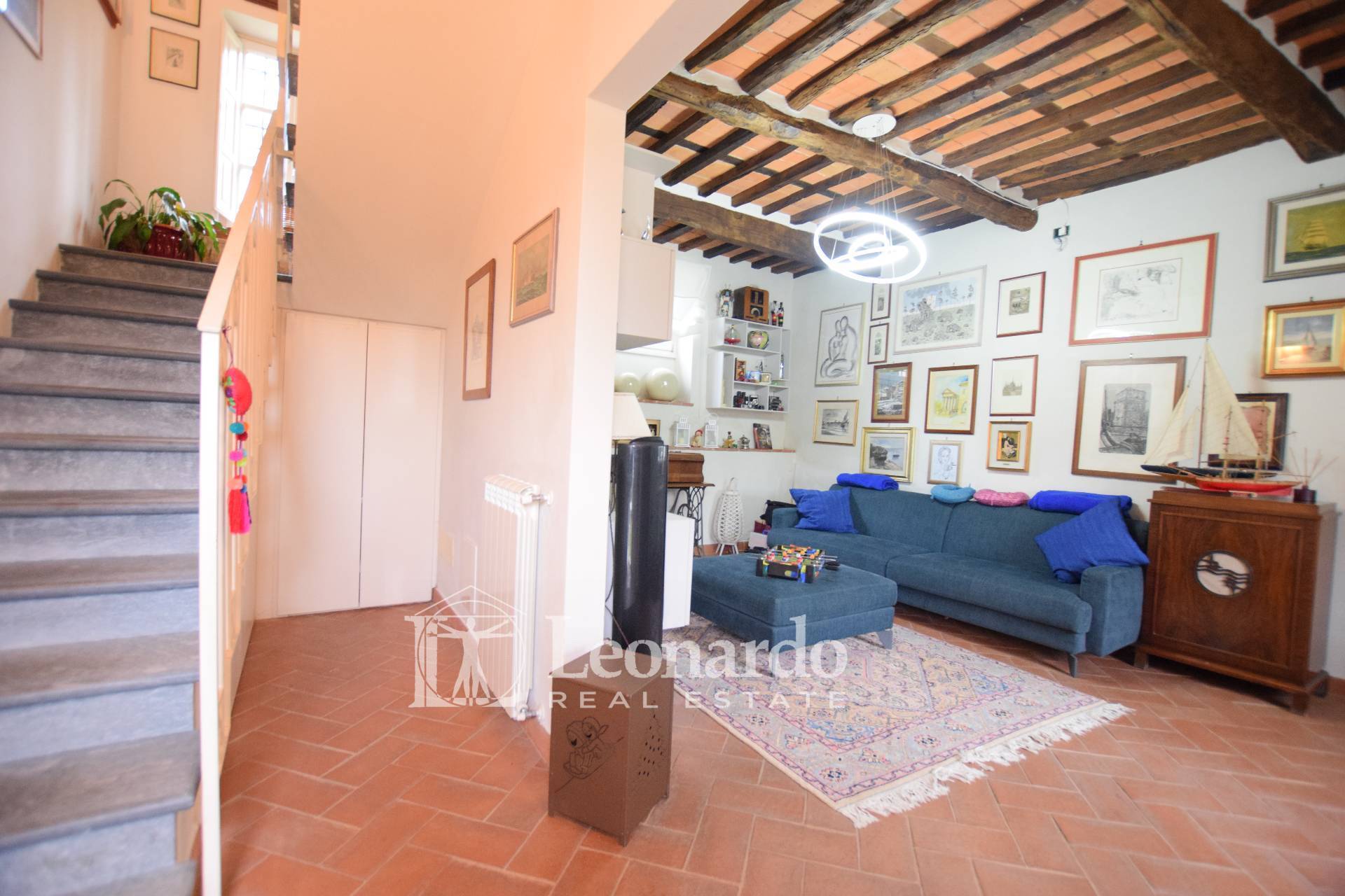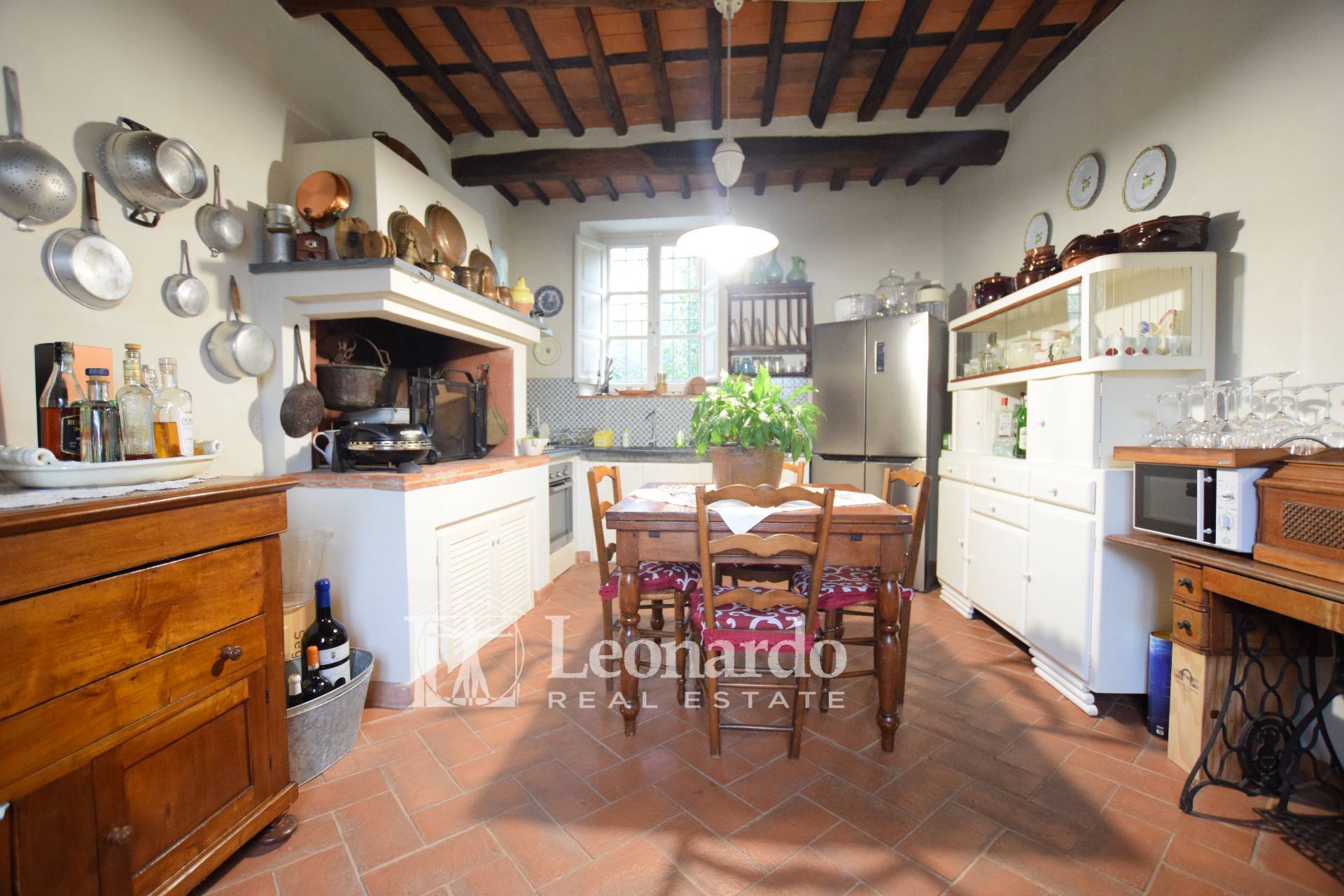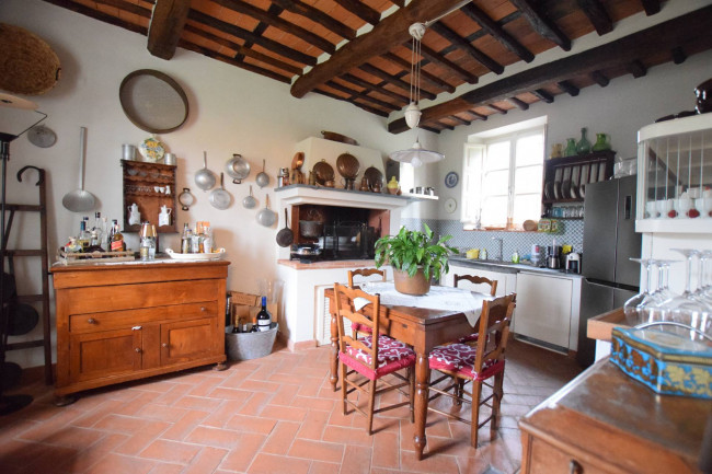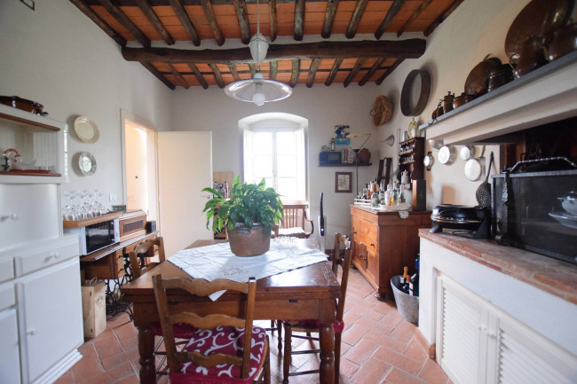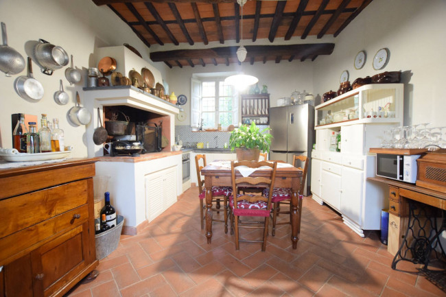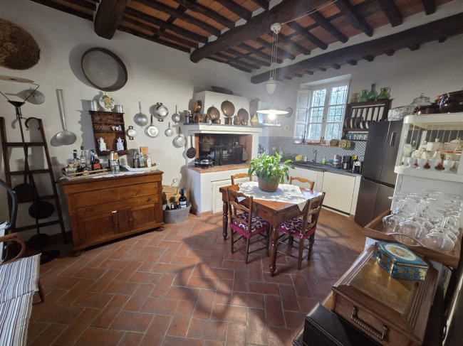 Al piano terra l'ingresso principale si apre su un ampio soggiorno, da cui accediamo a sinistra alla cucina abitabile di circa 20mq con particolari originali di grande fascino quali il camino.
