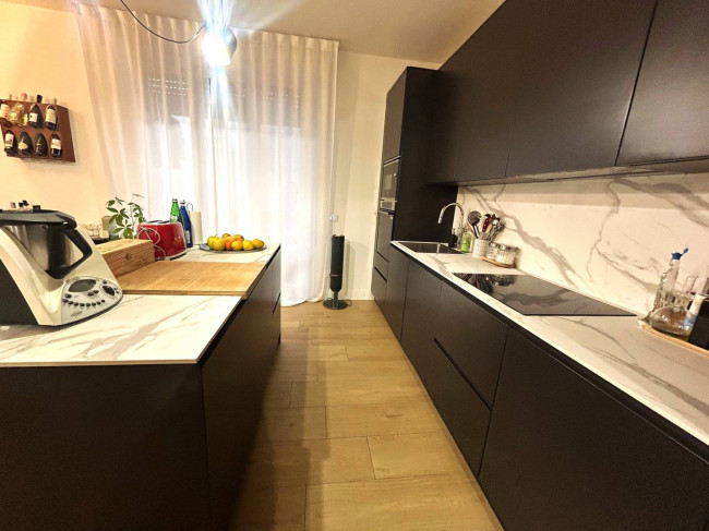 Disimpegno d'ingresso con pratico ripostiglio/guardaroba perfetto per cappotti e oggetti di uso quotidiano, la zona giorno si apre su ampio e splendido soggiorno open-space moderno ed accogliente con cucina a vista con comoda isola. E' inoltre dotato di due balconi verandati, il primo con accesso dalla cucina, mentre il secondo con accesso dal soggiorno è utilizzato come pratica zona lavanderia.
