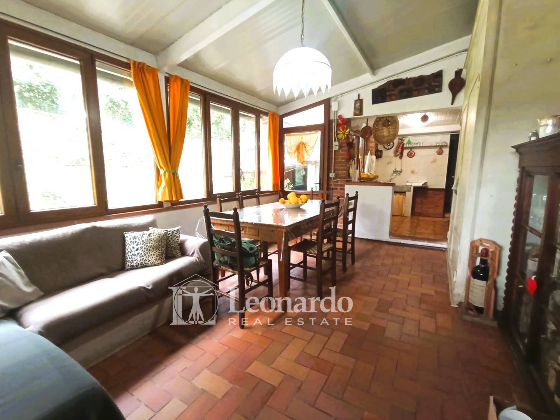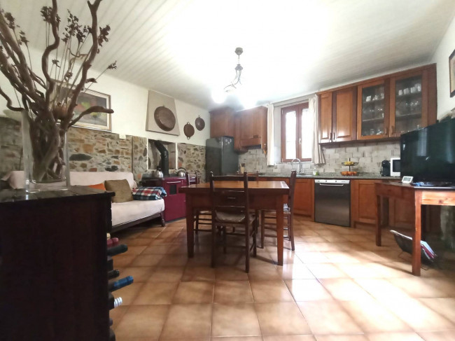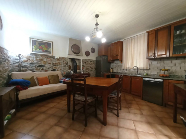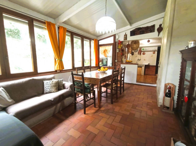 Si sviluppa su più livelli con accesso principale dalla resede privata fronte strada dove al piano terra il vano di ingresso si snoda fra la spaziosa cucina, il salotto, un ripostiglio e ll'area posteriore della casa dotata di grande veranda con cucina a vista ed area living, un bagno con doccia e una stanza attualmente utilizzata coma grande dispensa.