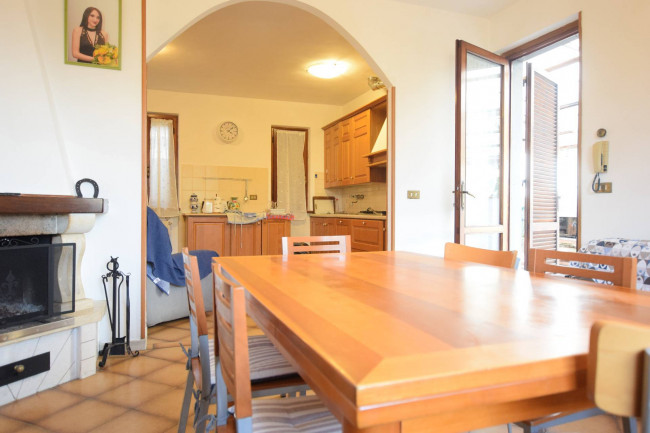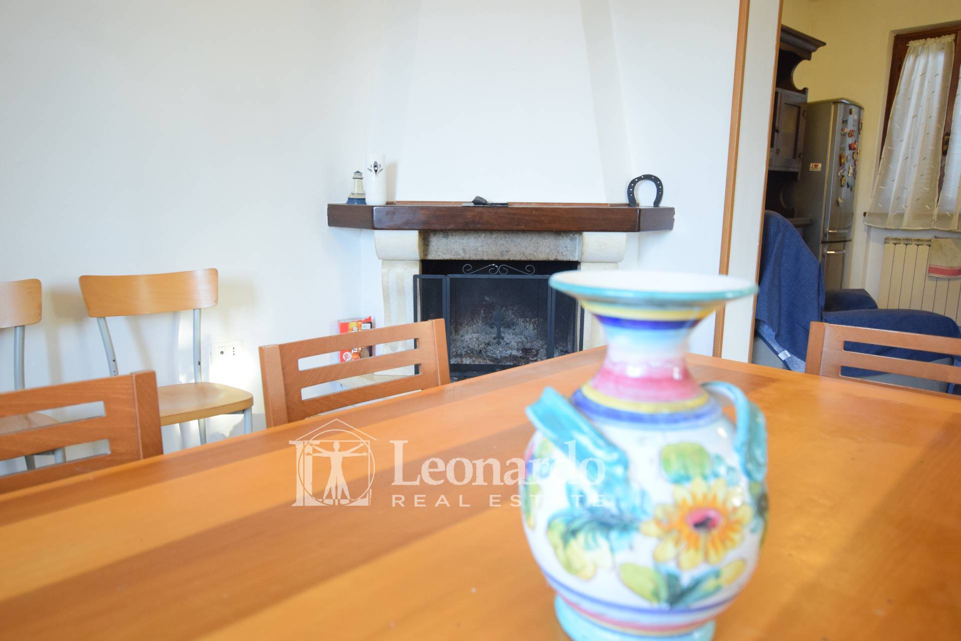 Zona giorno: ingresso su ampio disimpegno, luminoso ed ampio soggiorno con caminetto, cucina abitabile.