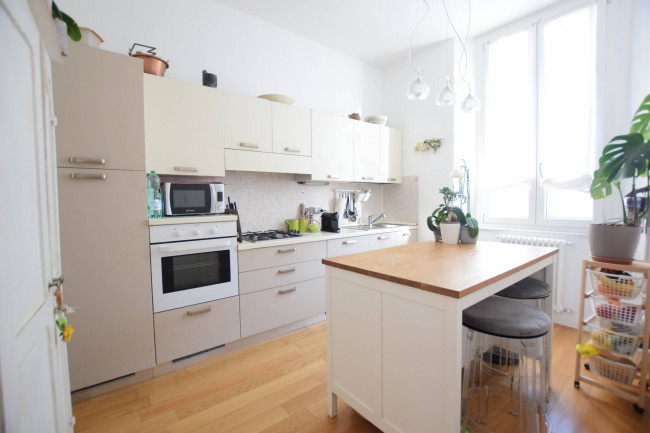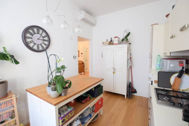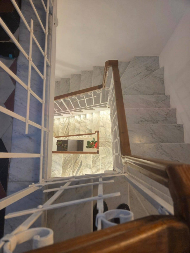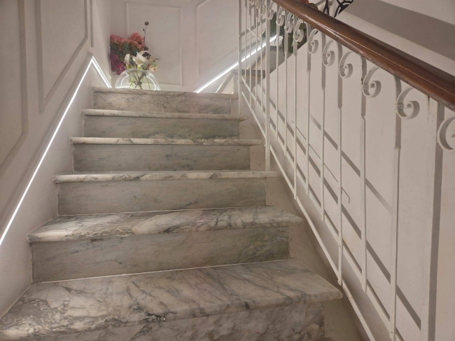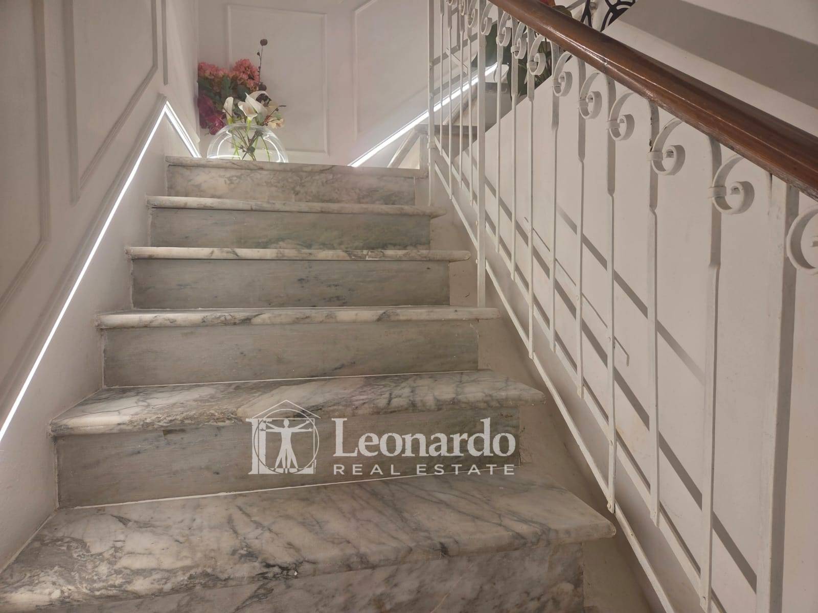 L'accesso all'Appartamento avviene tramite una corte spaziosa, ideale per mangiare all'aperto ma molto utile per posti bici e scooter. Una volta raggiunto il portone d'ingresso indipendente, una suggestiva scala in marmo originale dell'epoca, che conferisce anche un tocco di eleganza senza tempo, arriviamo al primo piano.