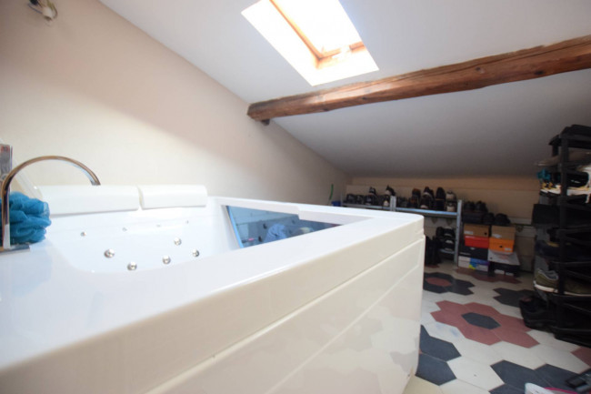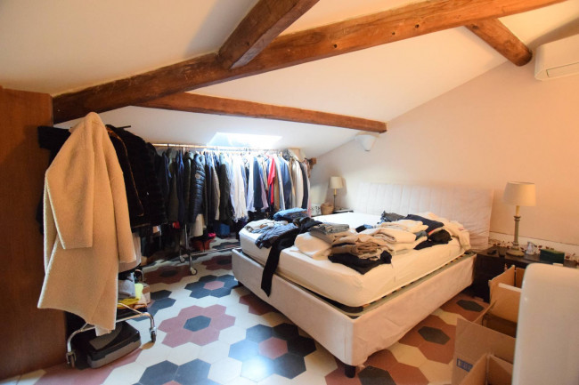 Al piano superiore troviamo un grande vano mansardato che accoglie camera matrimoniale e bagno, ma la metratura fa sì che si possano ricavare 2 camere.