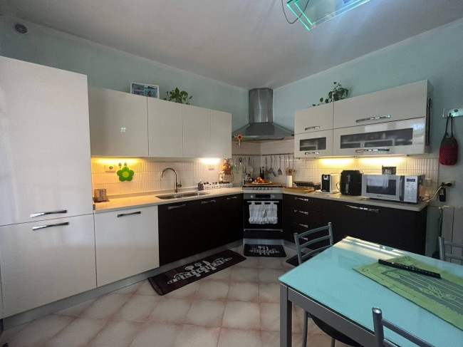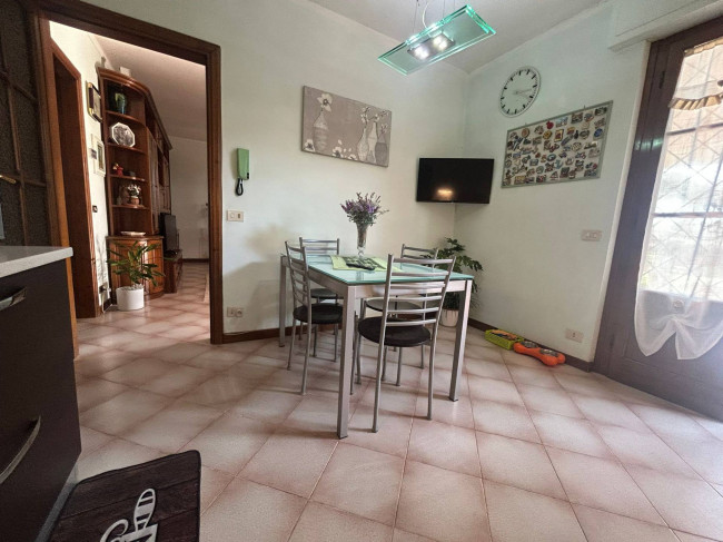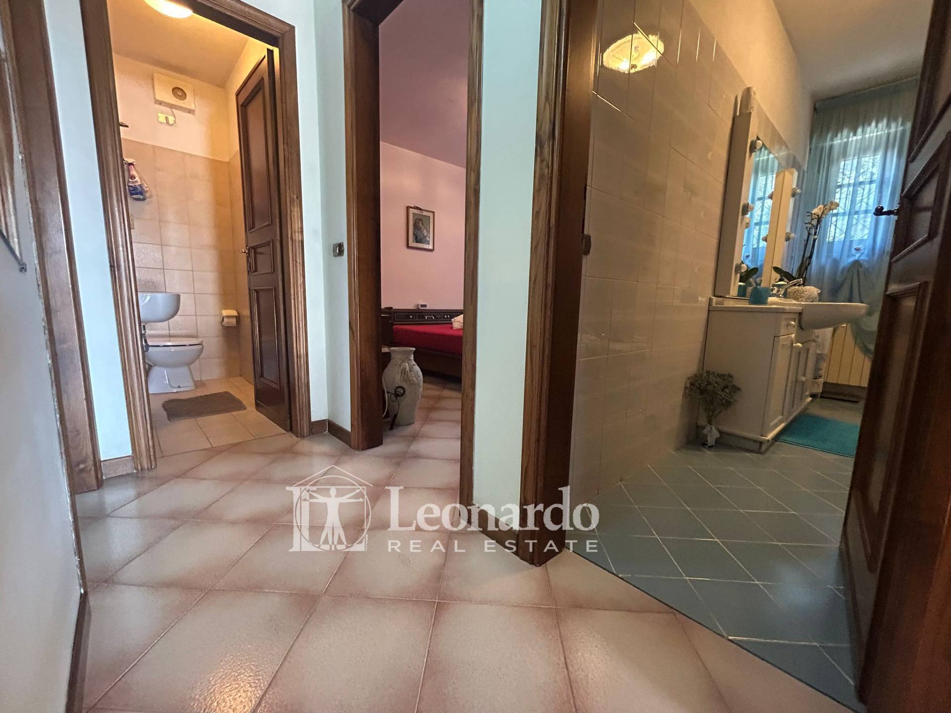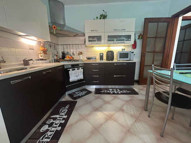 Ingresso su soggiorno, ampia cucina abitabile con accesso diretto al giardino (possibilità di realizzare un ampio open-space per tutta la zona giorno). Tramite disimpegno accediamo alla zona notte della casa in cui troviamo, una stanza armadi o eventuale terza cameretta, bagno finestrato con vasca, due camere matrimoniali, secondo bagno di servizio.