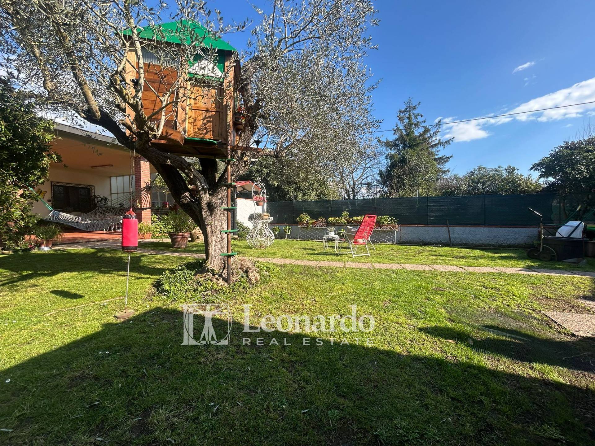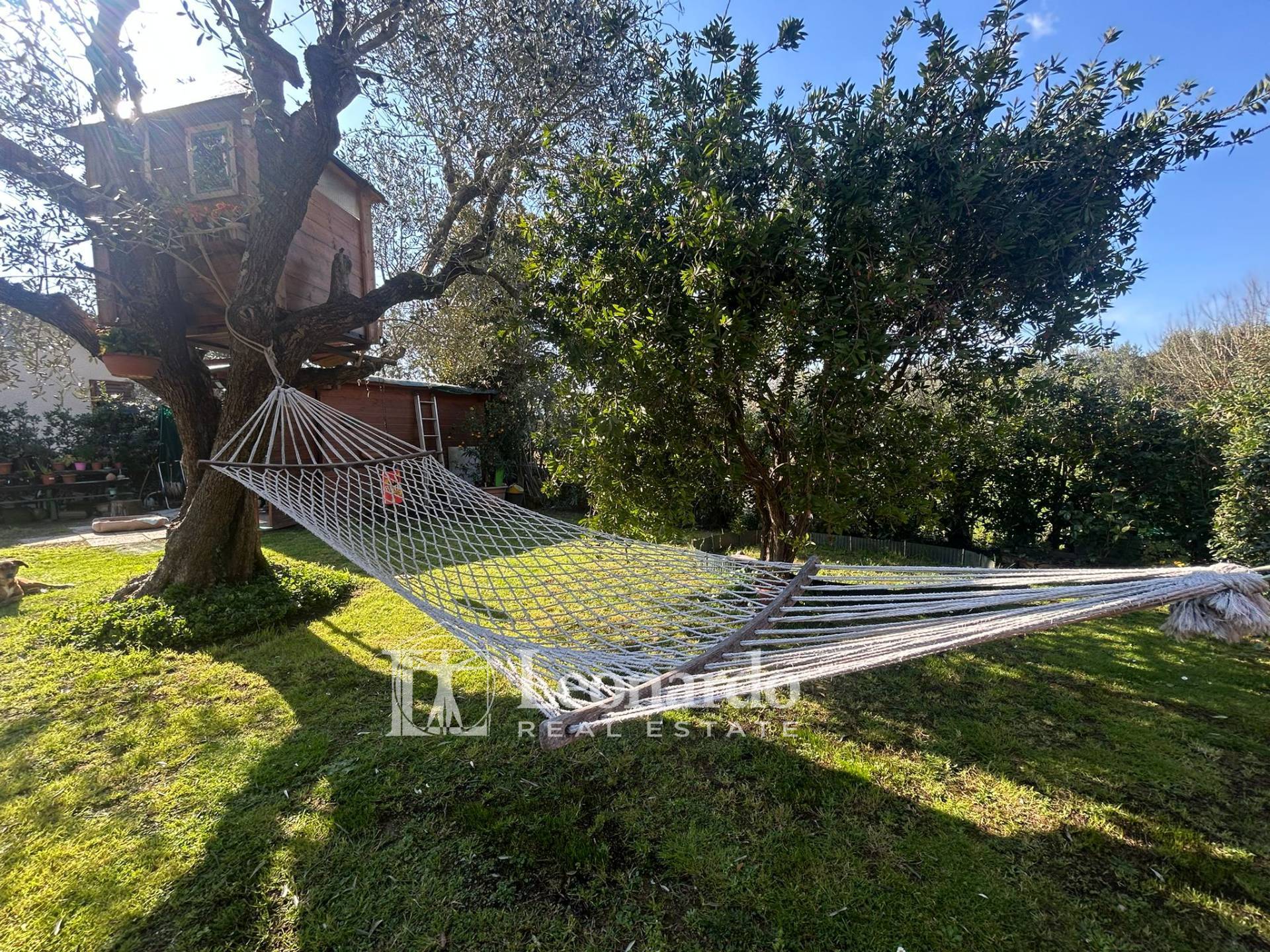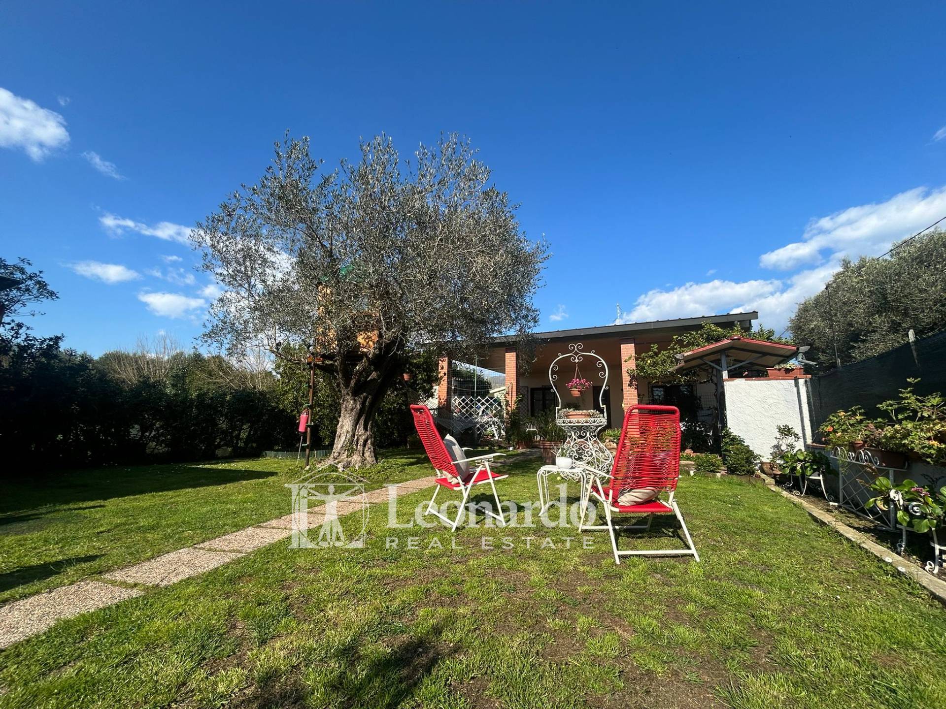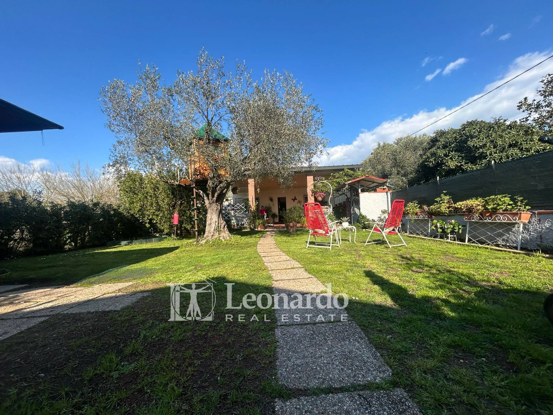 La proprietà si apre su un ampio giardino di circa 300 mq, perfettamente curato con prato verde, arricchito da limoni, ulivi e piante ornamentali, che conferiscono un’atmosfera piacevole e riservata. L’area esterna è versatile e consente comodamente di parcheggiare più auto senza compromettere gli spazi.