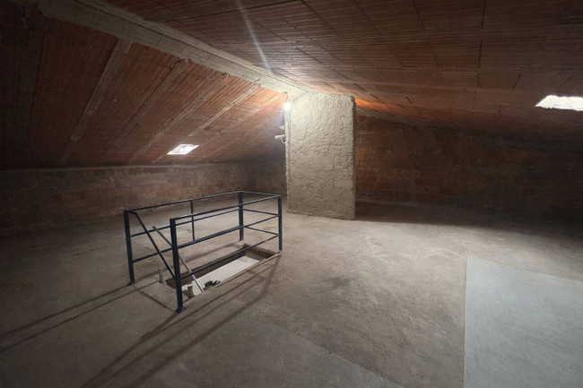 Dal disimpegno, tramite scala retrattile, si accede alla soffitta, grande quanto tutta la superficie della casa, con altezza variabile da 130 cm a 250 cm, ideale come spazio di deposito, o con la realizzazione di una scala come ampia mansarda.