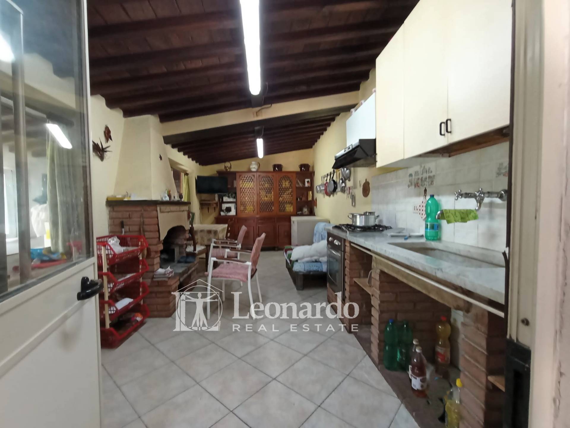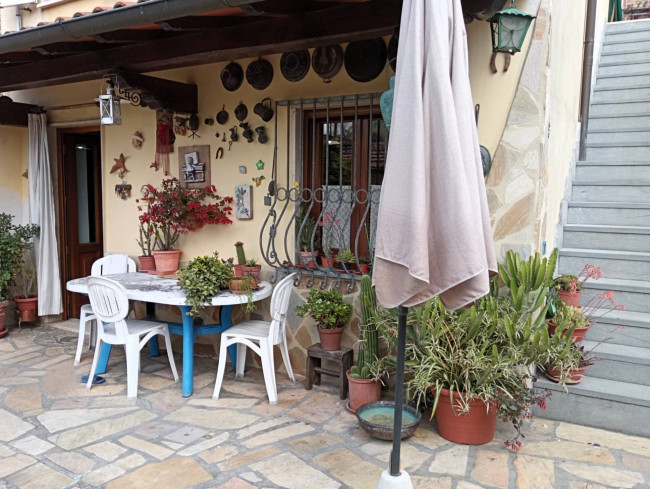 Porticati, bagno con doccia accessibile dalla resede, garage e dependance composta da ripostiglio e sala attrezzata con camino completano la proprietà che circonda un bel giardino piantumato.
