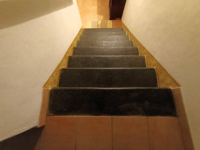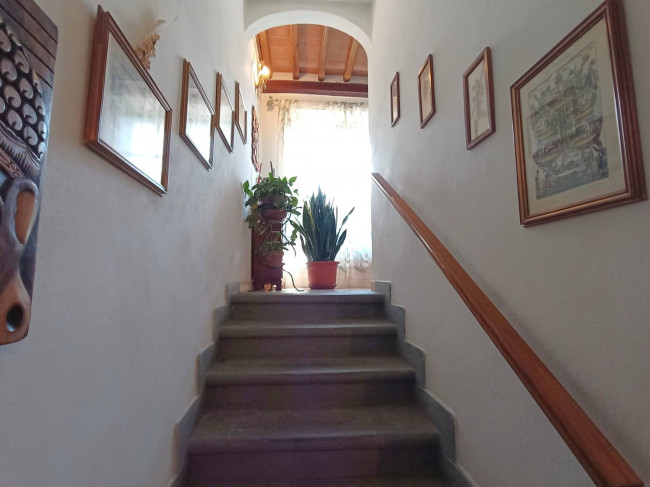 Dalla resede con ingresso carrabile si accede al piano terra composto da grande cucina con camino, disimpegno scale ed ampio bagno finestrato con vasca e doccia; al piano primo le due camere matrimoniali completano la prima area abitativa collegata internamente al secondo appartamento che si sviluppa ai due piani superiori e accessibile direttamente dall'ingresso delle scale esterne. Questo secondo appartamento dispone al secondo piano di cucina-tinello e sala, all'ultimo piano invece troviamo le due camere matrimoniali e il bagno con doccia.